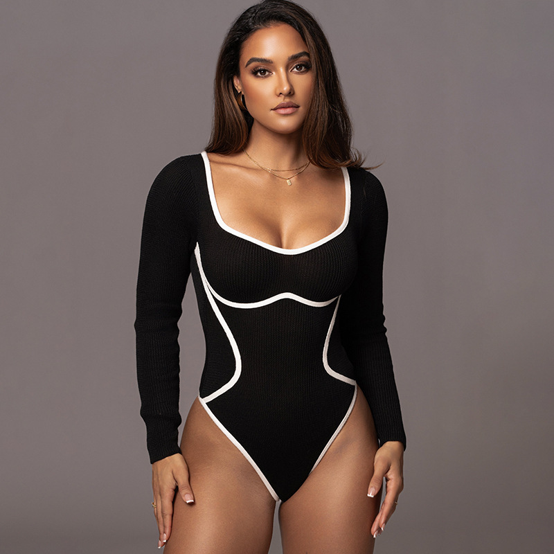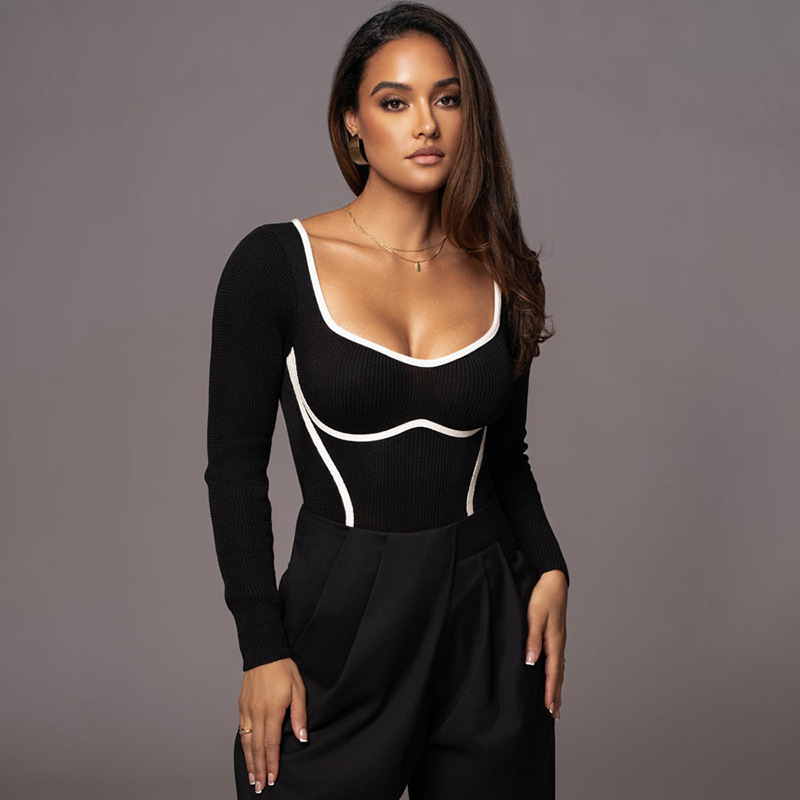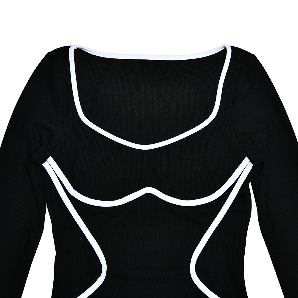 국경 간 유럽 및 미국 대외 무역 여성 2024 대조 원피스 티셔츠 가슴 니트 스트레치 실 작은 셔츠 틈새 탑