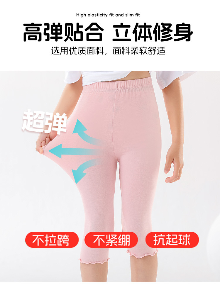 2024 여름 겉옷 스트레치 레깅스 어린이 나무 귀 5 점 바지 소녀 높은 허리 바지 큰 어린이 홈 바지