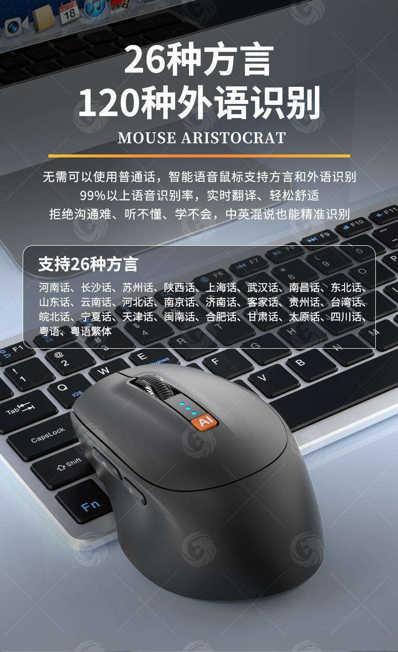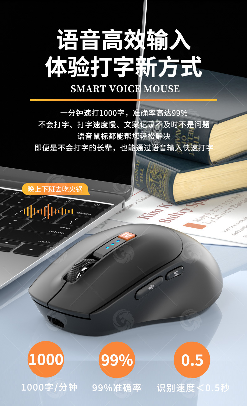 Ai 지능형 음성 마우스 인공 지능 쓰기 번역 입력 충전식 블루투스 3 모드 무선 음소거 마우스스토어 가기