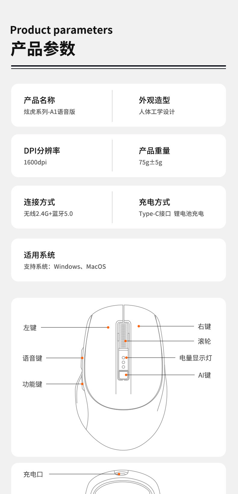 • AI 스마트 음성 마우스/충전식/음소거 블랙