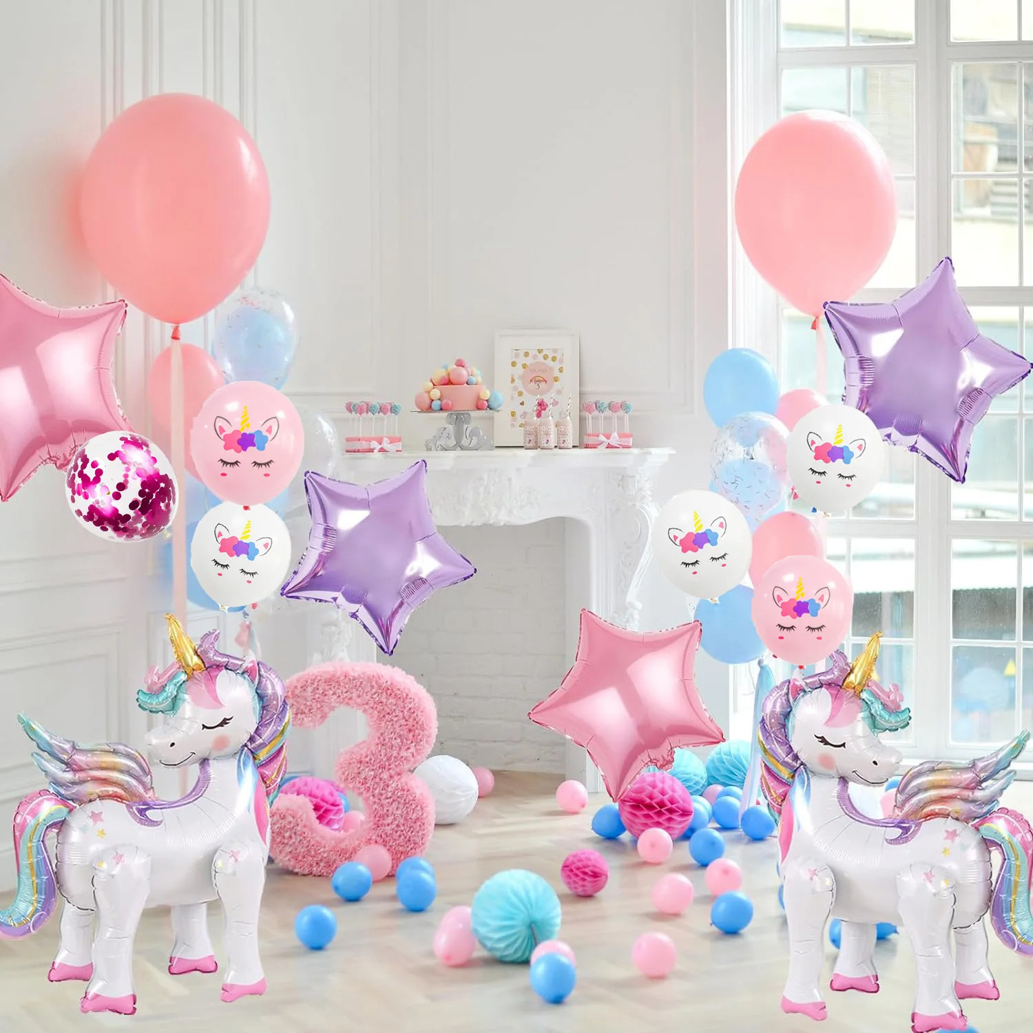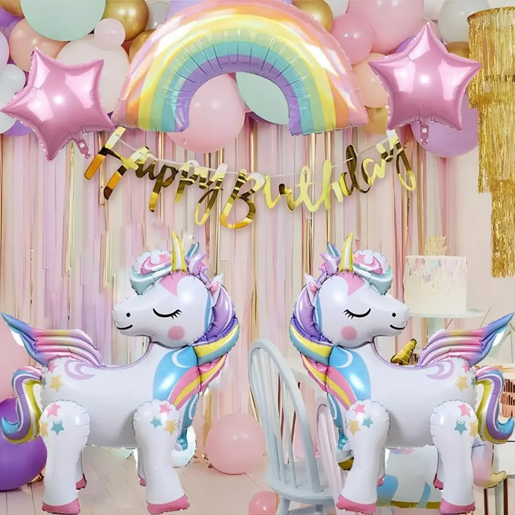 알루미늄 필름 풍선 크로스보더 4D 입체 조립 유니콘 동물 테마 생일 유치원 교실 파티스토어 가기