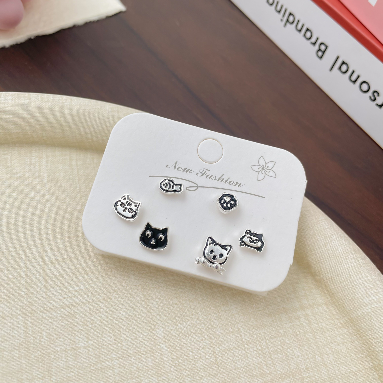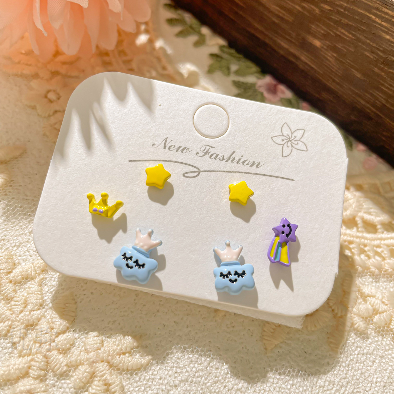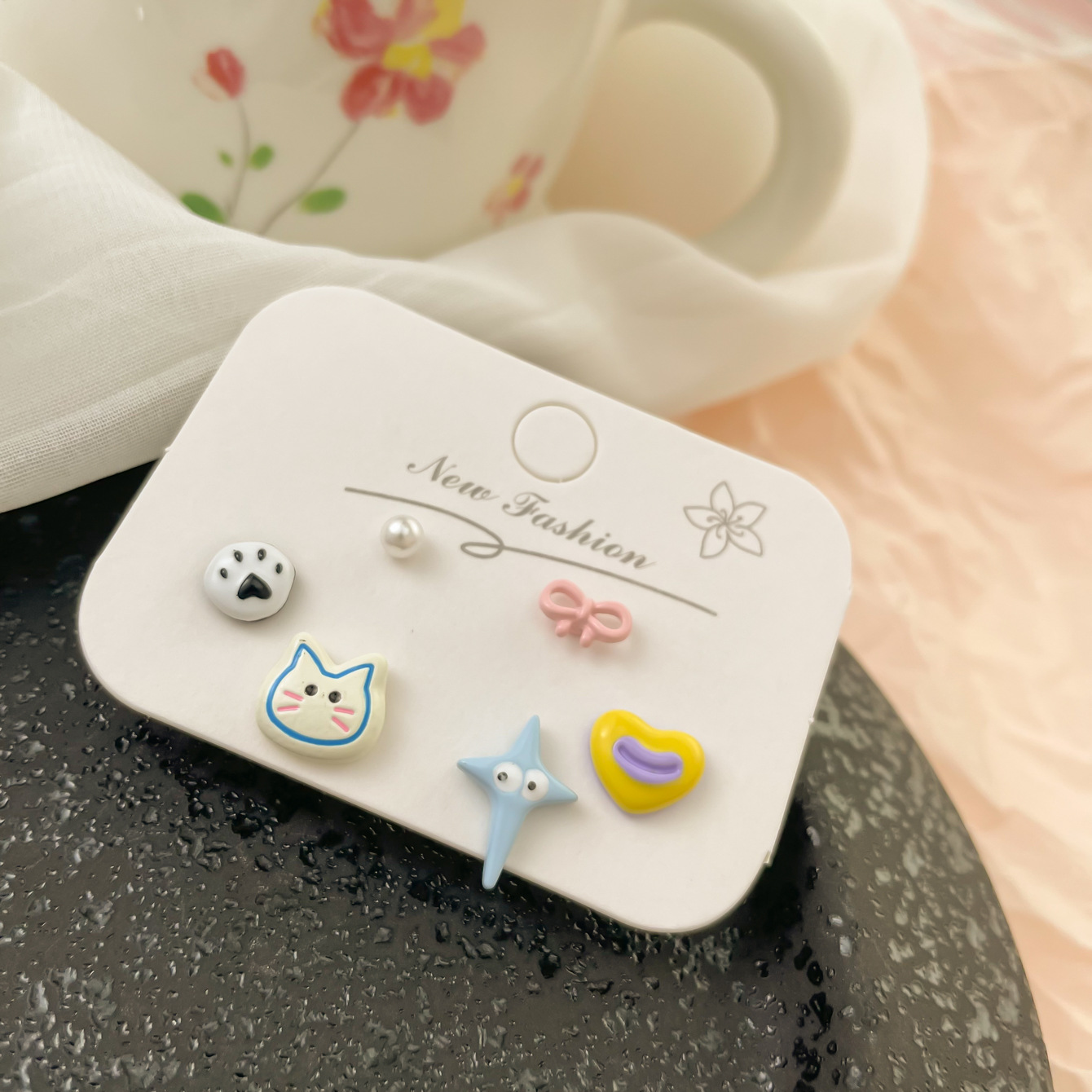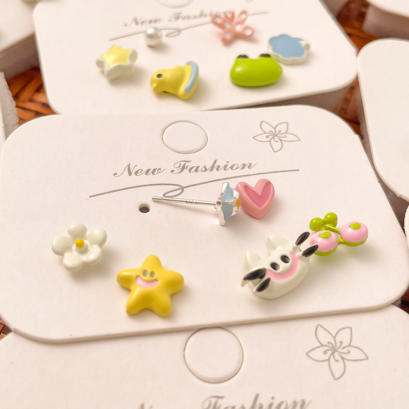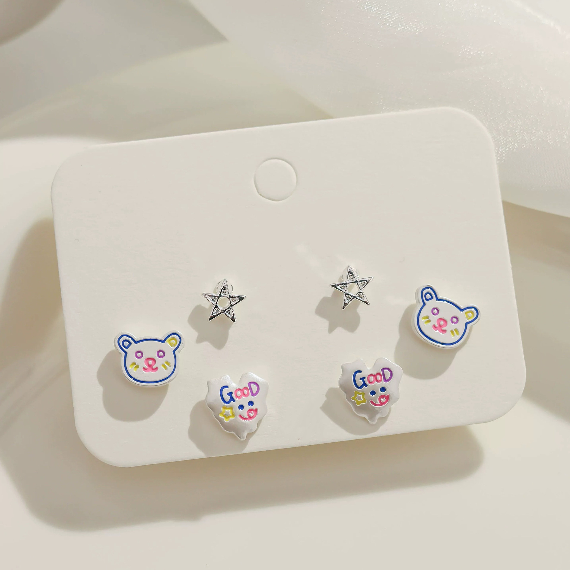 여성을 위한 신선하고 귀여운 모조 실버 바늘 귀걸이, 작고 절묘한 귀걸이, 귀를 위한 고급 만화 어린이 귀걸이