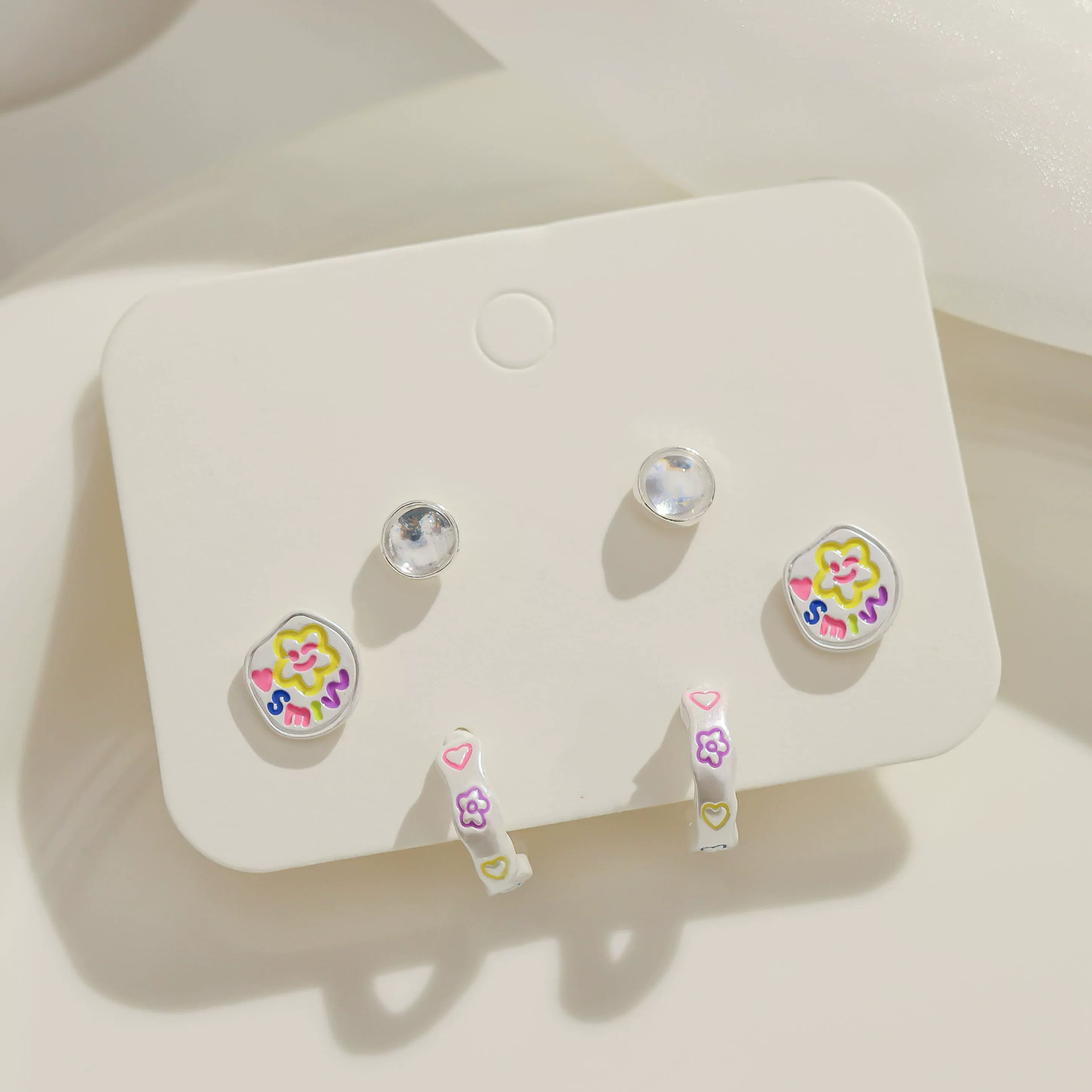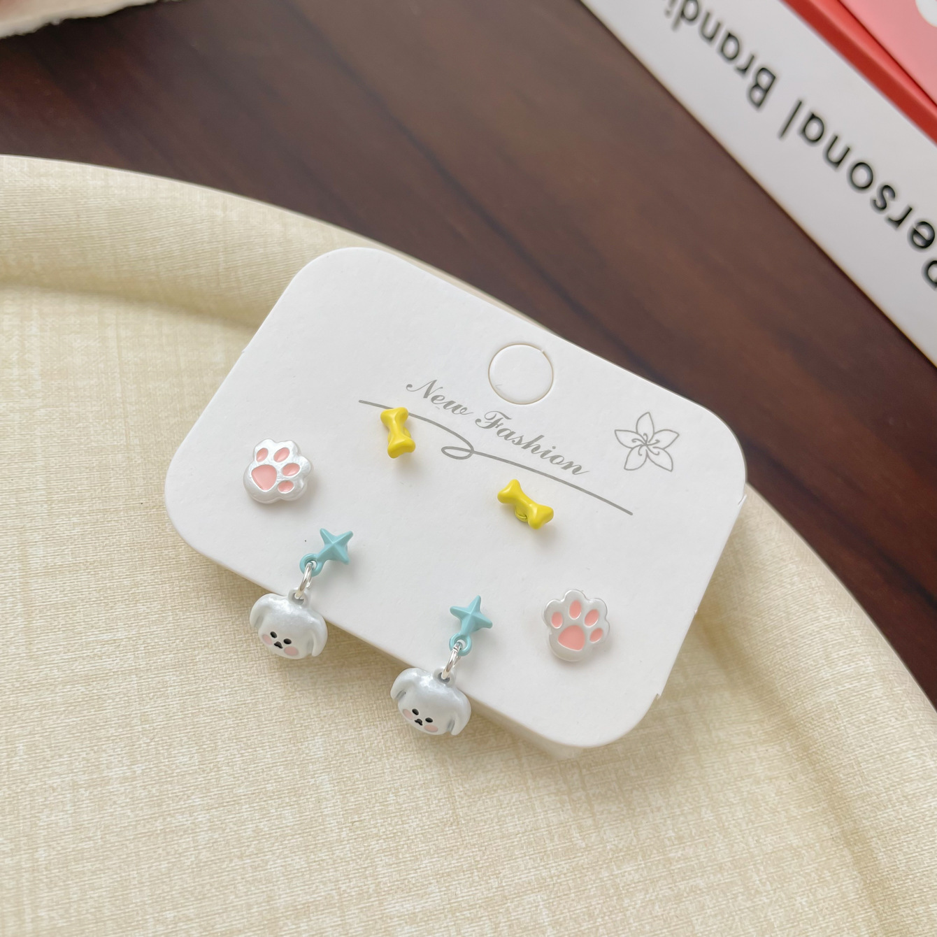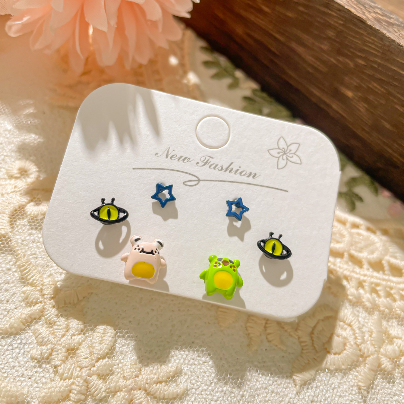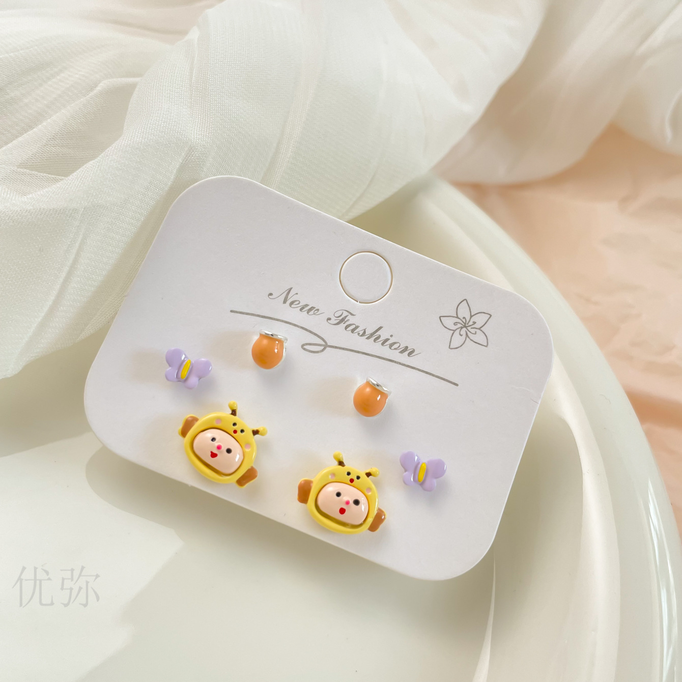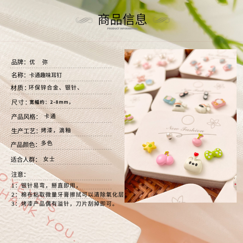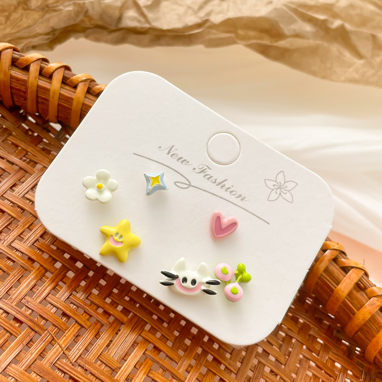여성을 위한 신선하고 귀여운 모조 실버 바늘 귀걸이, 작고 절묘한 귀걸이, 귀를 위한 고급 만화 어린이 귀걸이