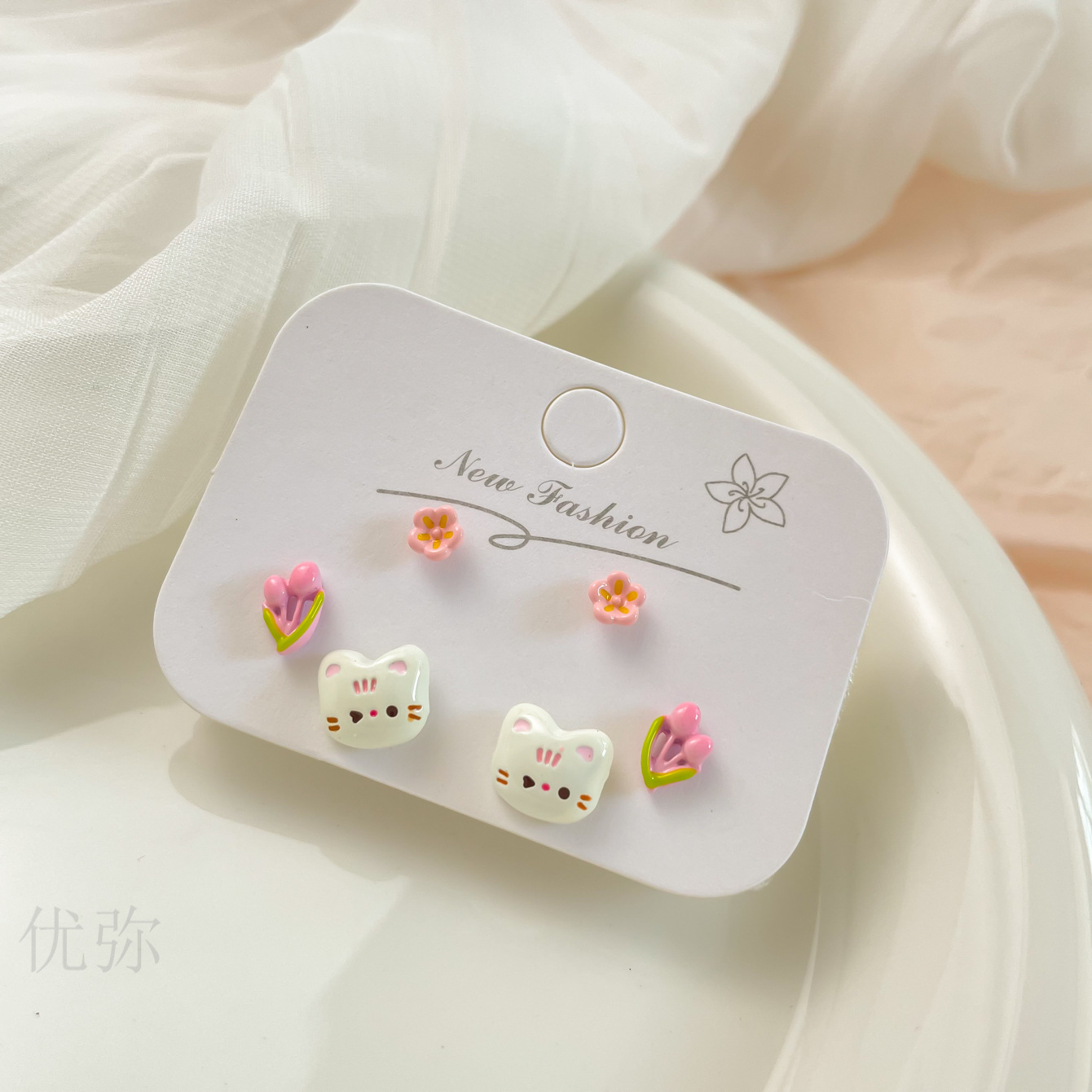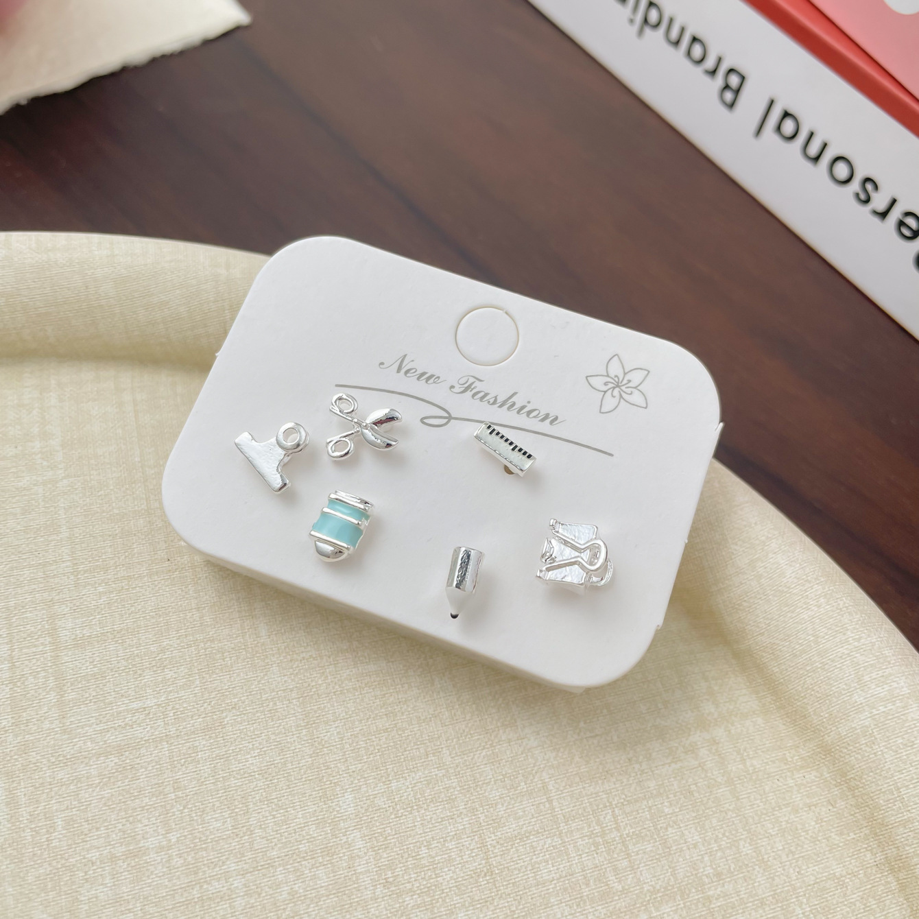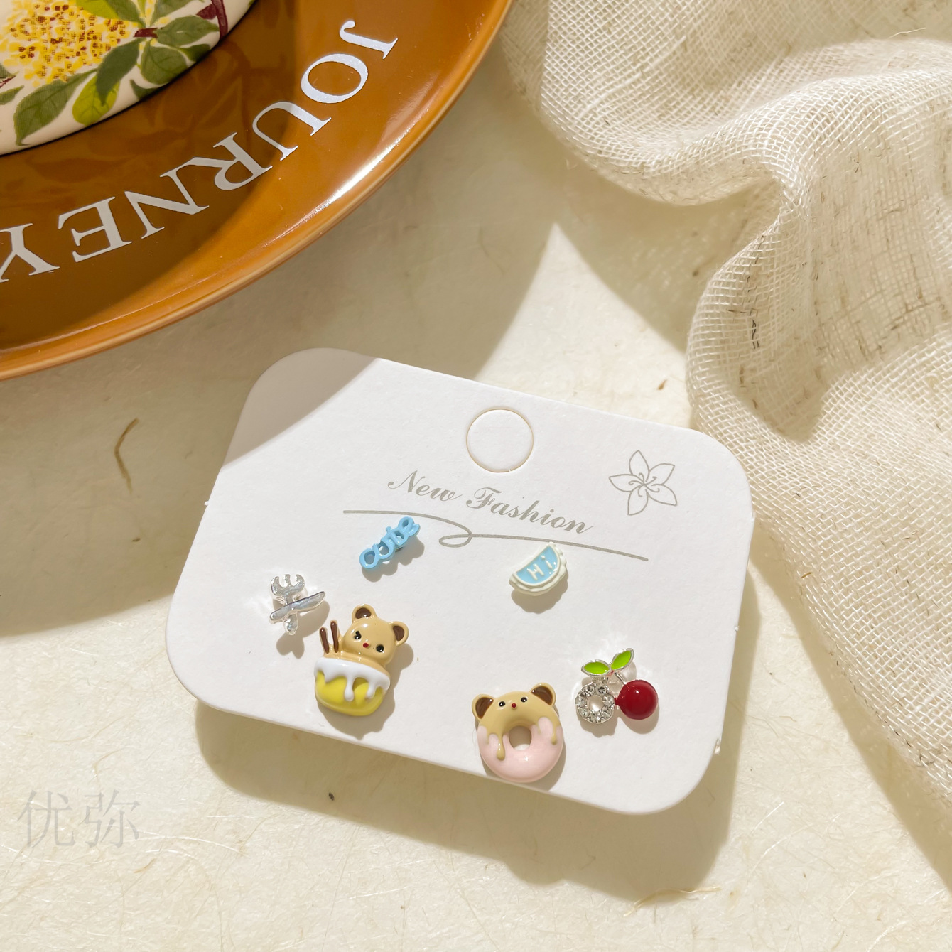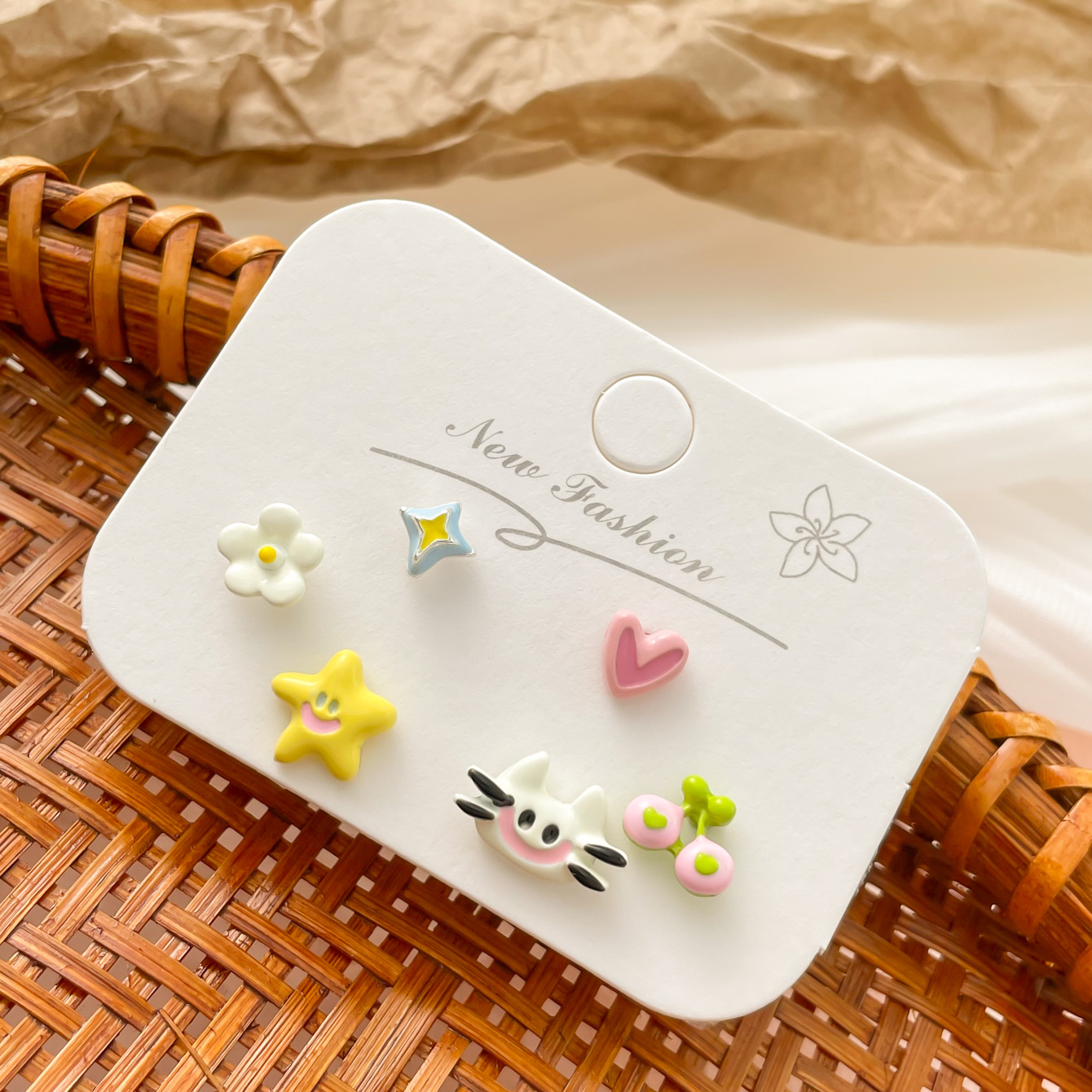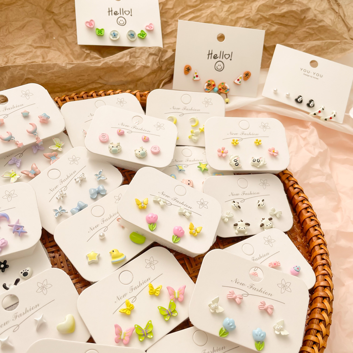여성을 위한 신선하고 귀여운 모조 실버 바늘 귀걸이, 작고 절묘한 귀걸이, 귀를 위한 고급 만화 어린이 귀걸이