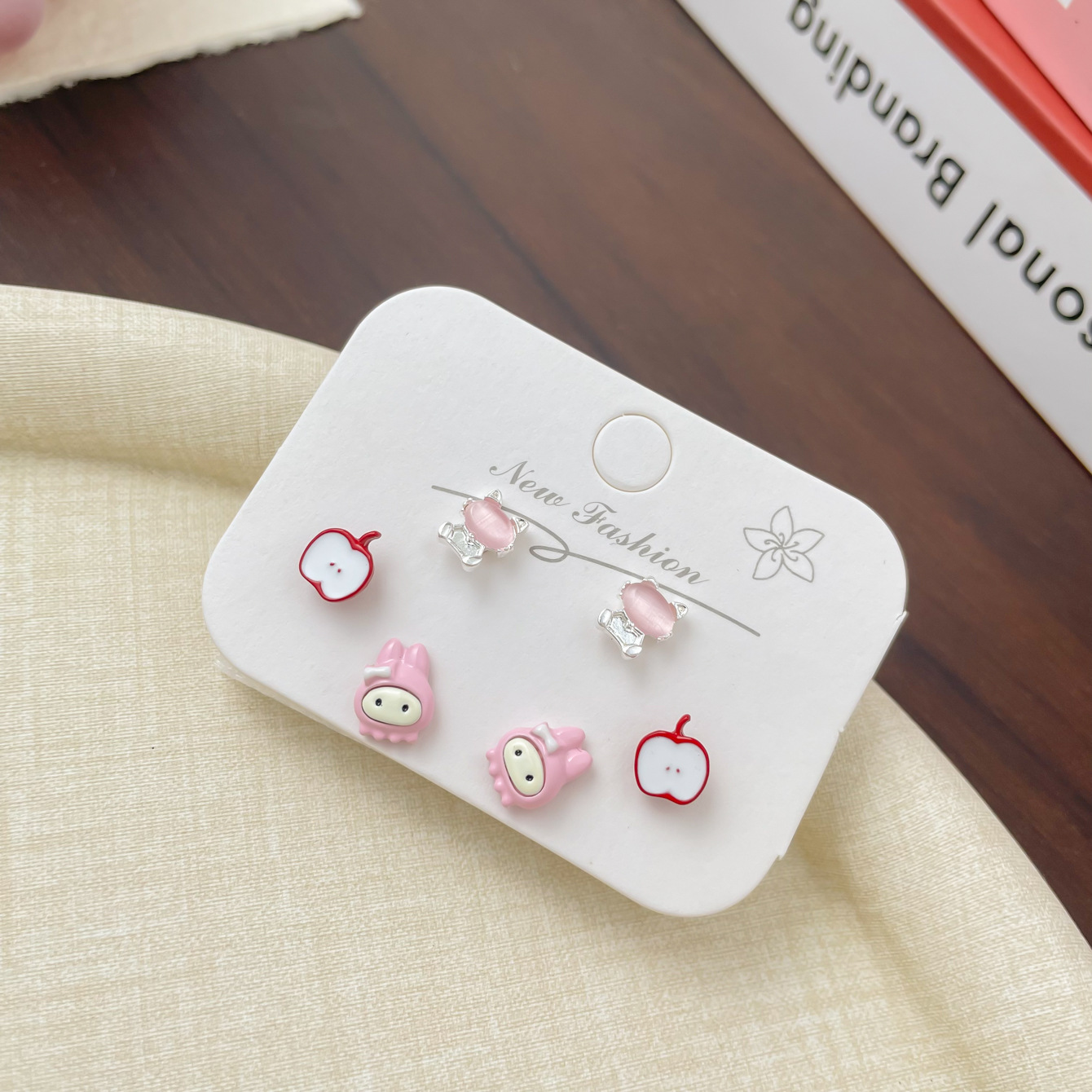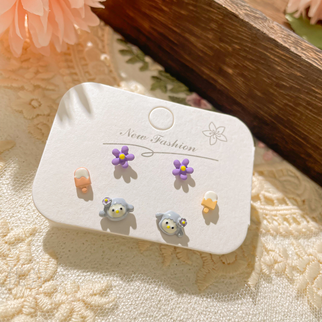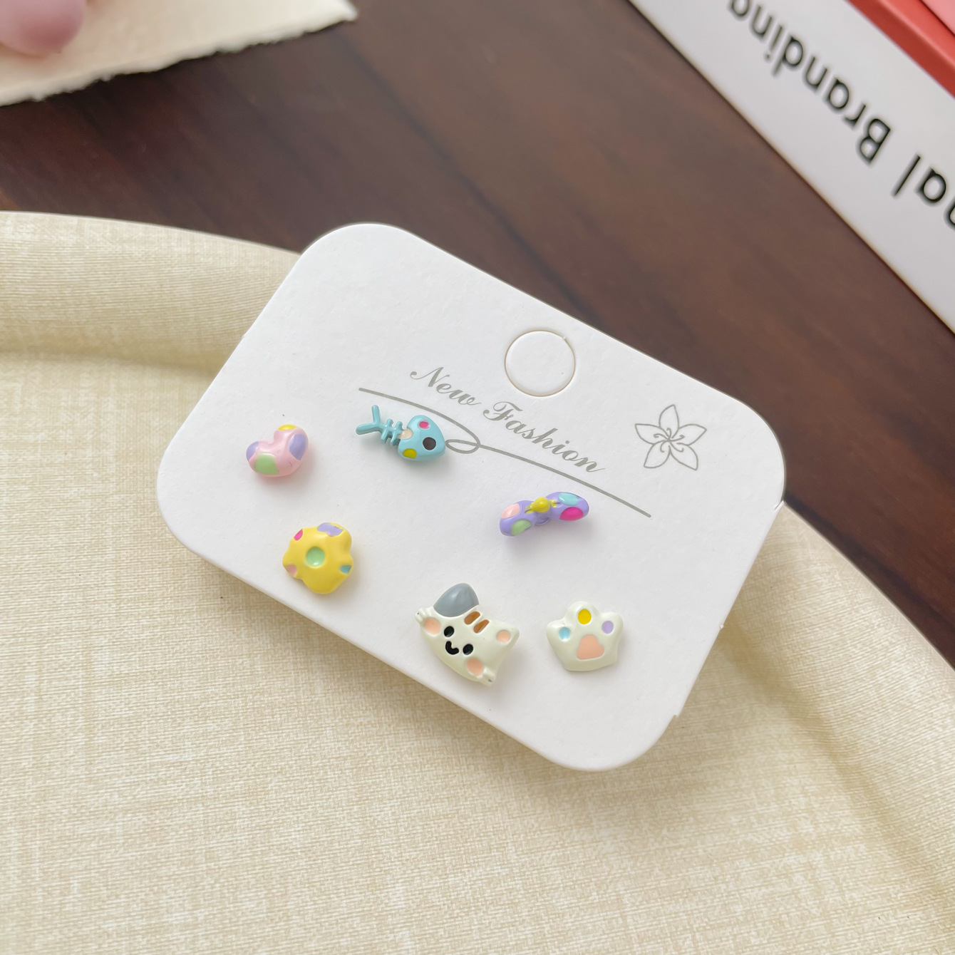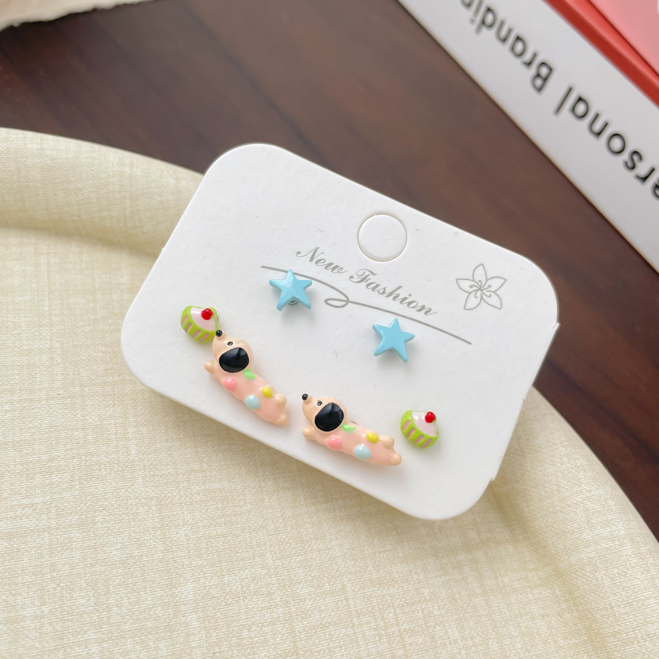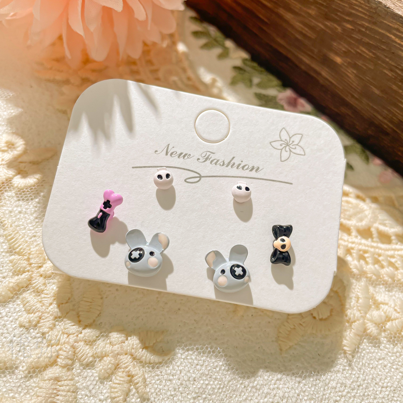 여성을 위한 신선하고 귀여운 모조 실버 바늘 귀걸이, 작고 절묘한 귀걸이, 귀를 위한 고급 만화 어린이 귀걸이