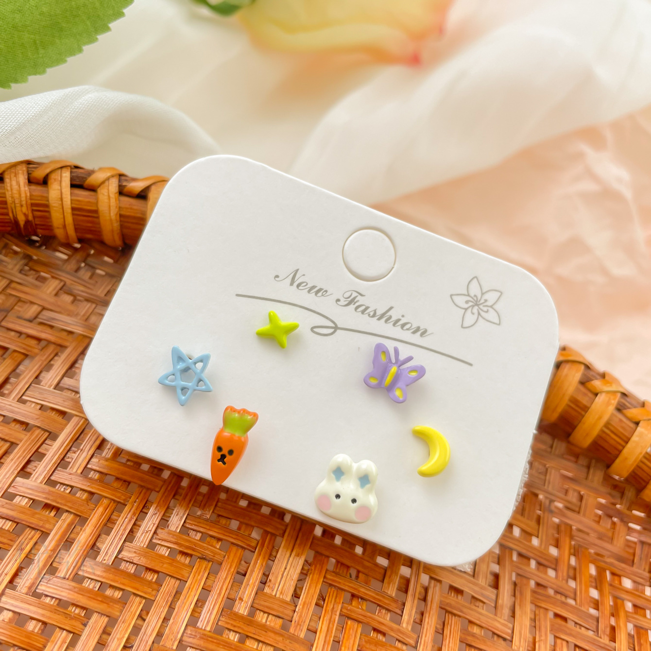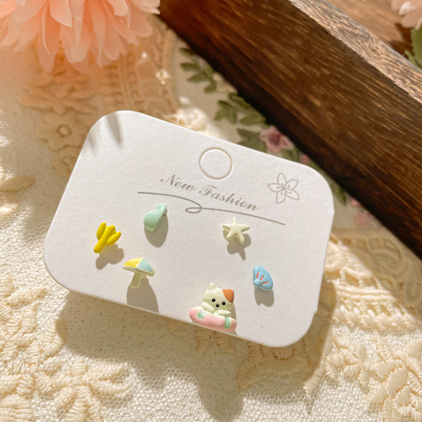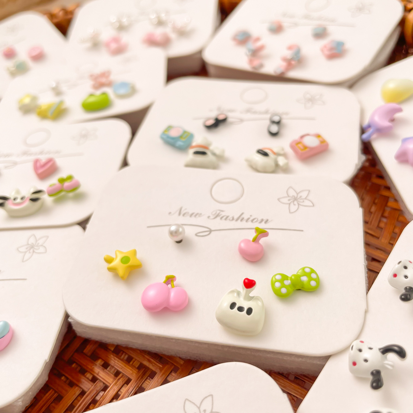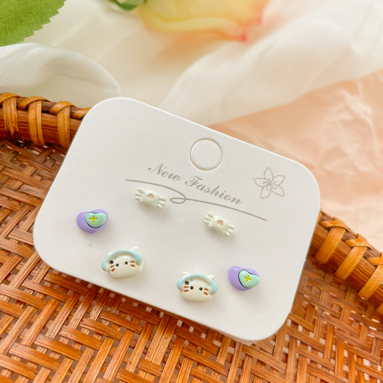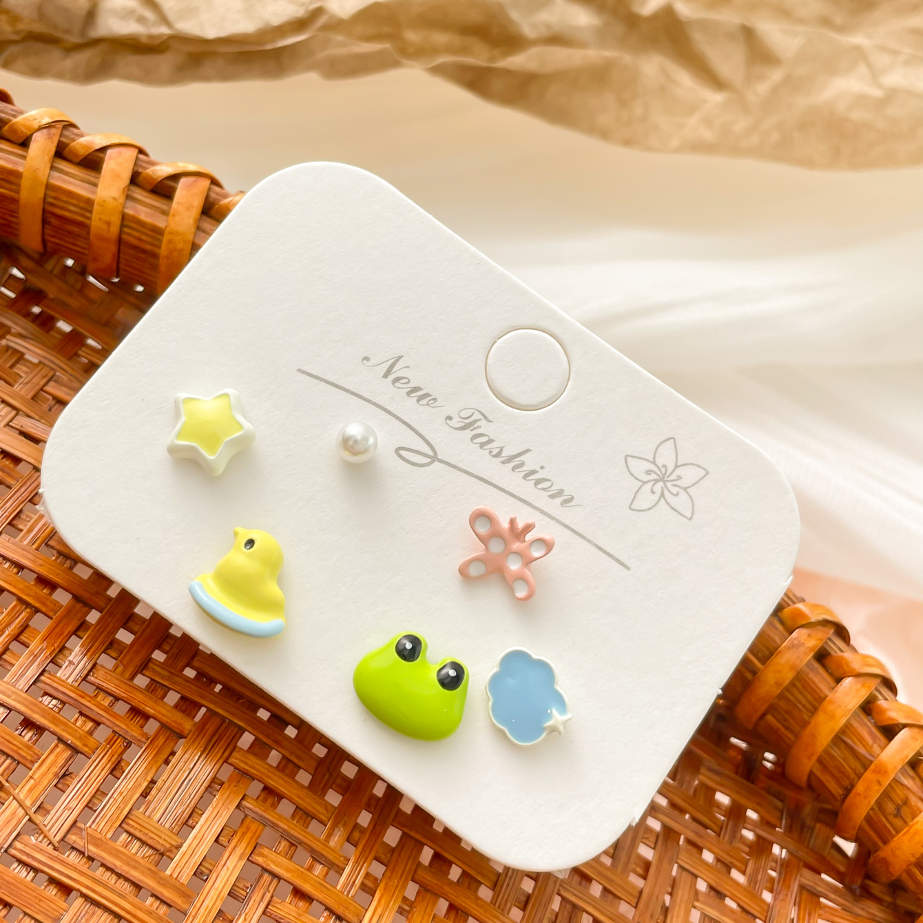 여성을 위한 신선하고 귀여운 모조 실버 바늘 귀걸이, 작고 절묘한 귀걸이, 귀를 위한 고급 만화 어린이 귀걸이