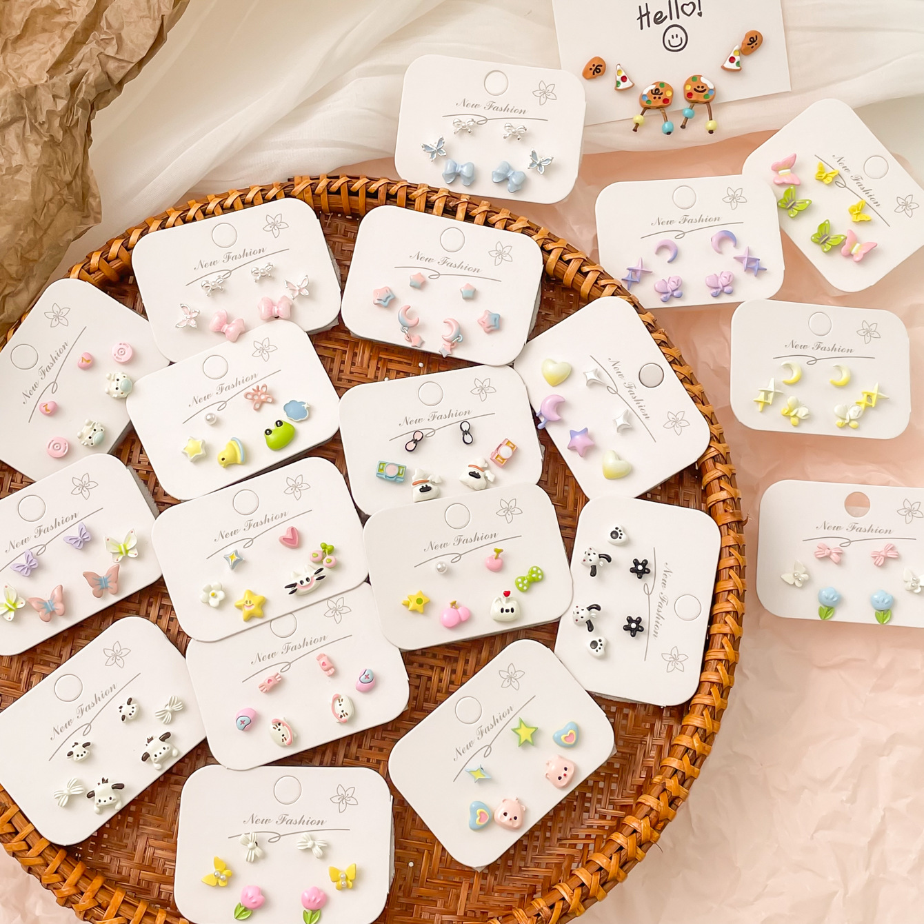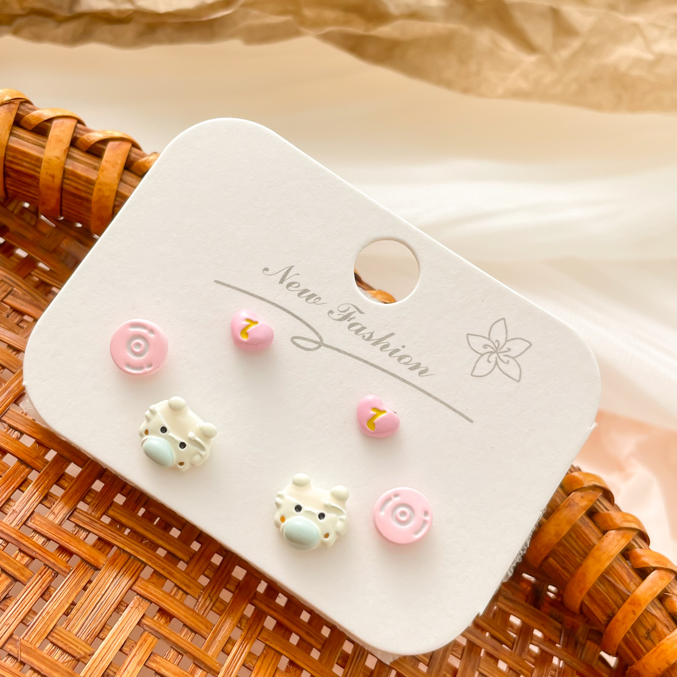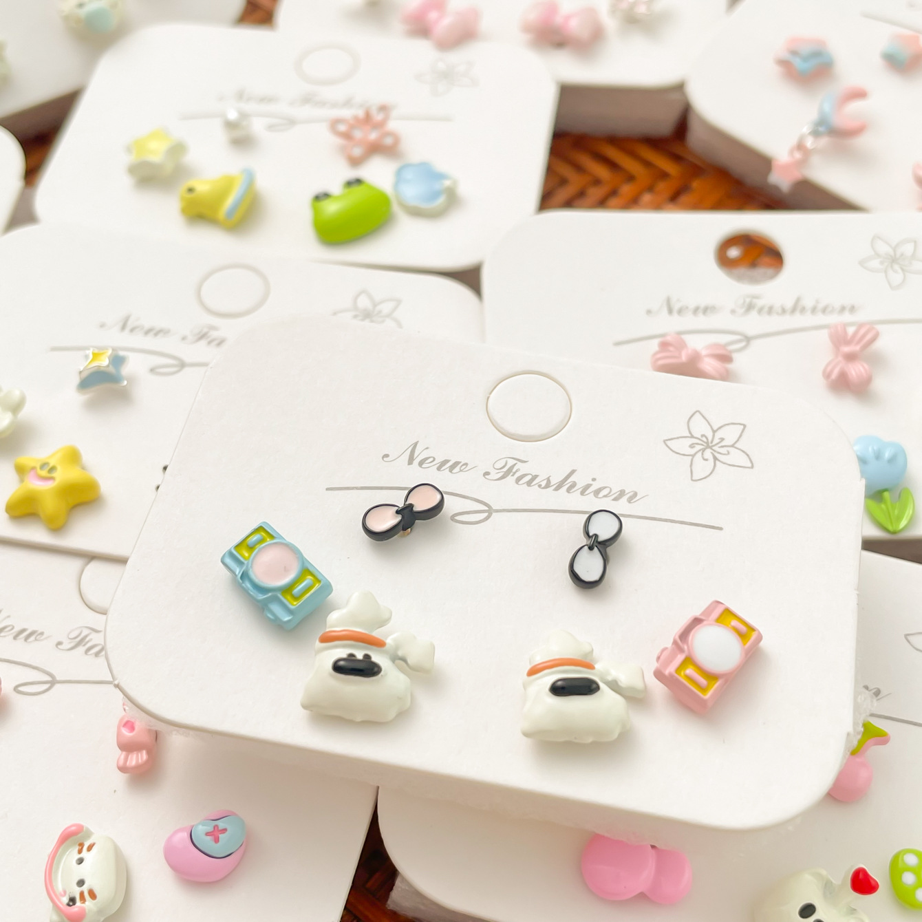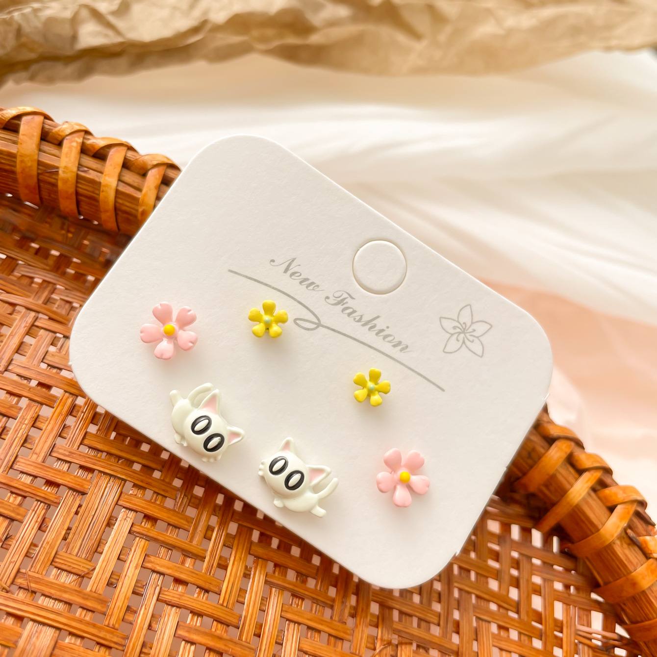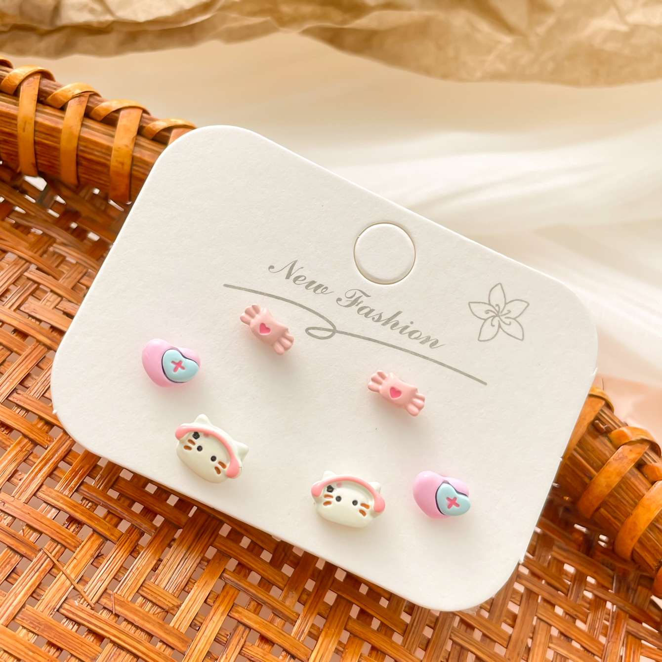 여성을 위한 신선하고 귀여운 모조 실버 바늘 귀걸이, 작고 절묘한 귀걸이, 귀를 위한 고급 만화 어린이 귀걸이