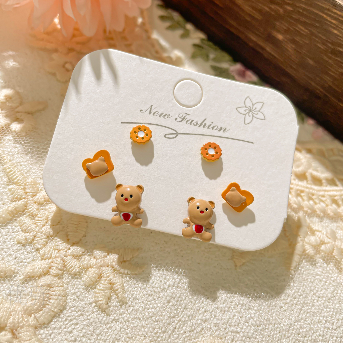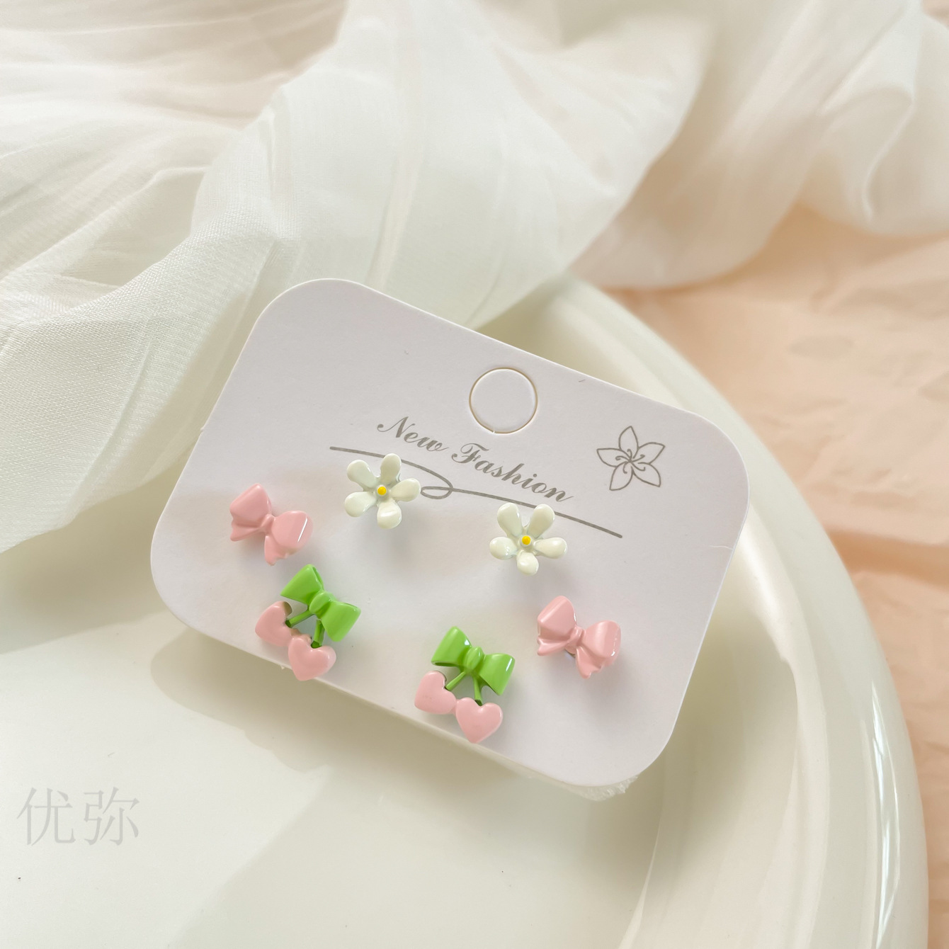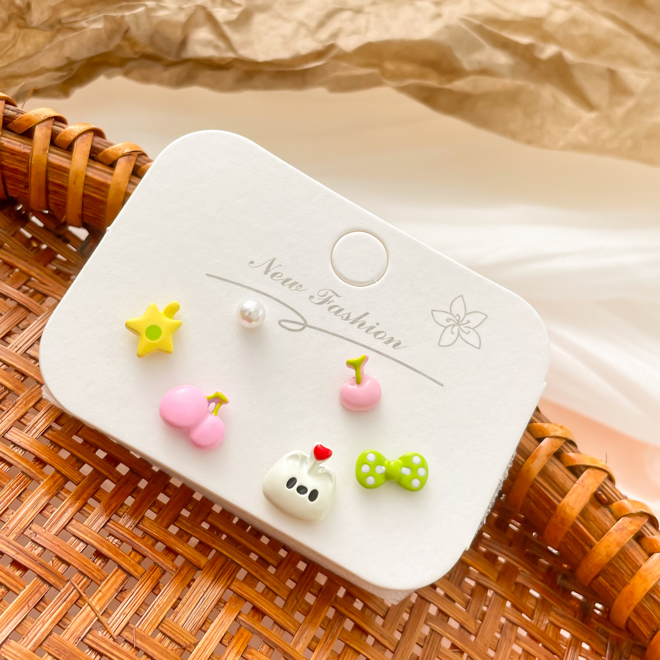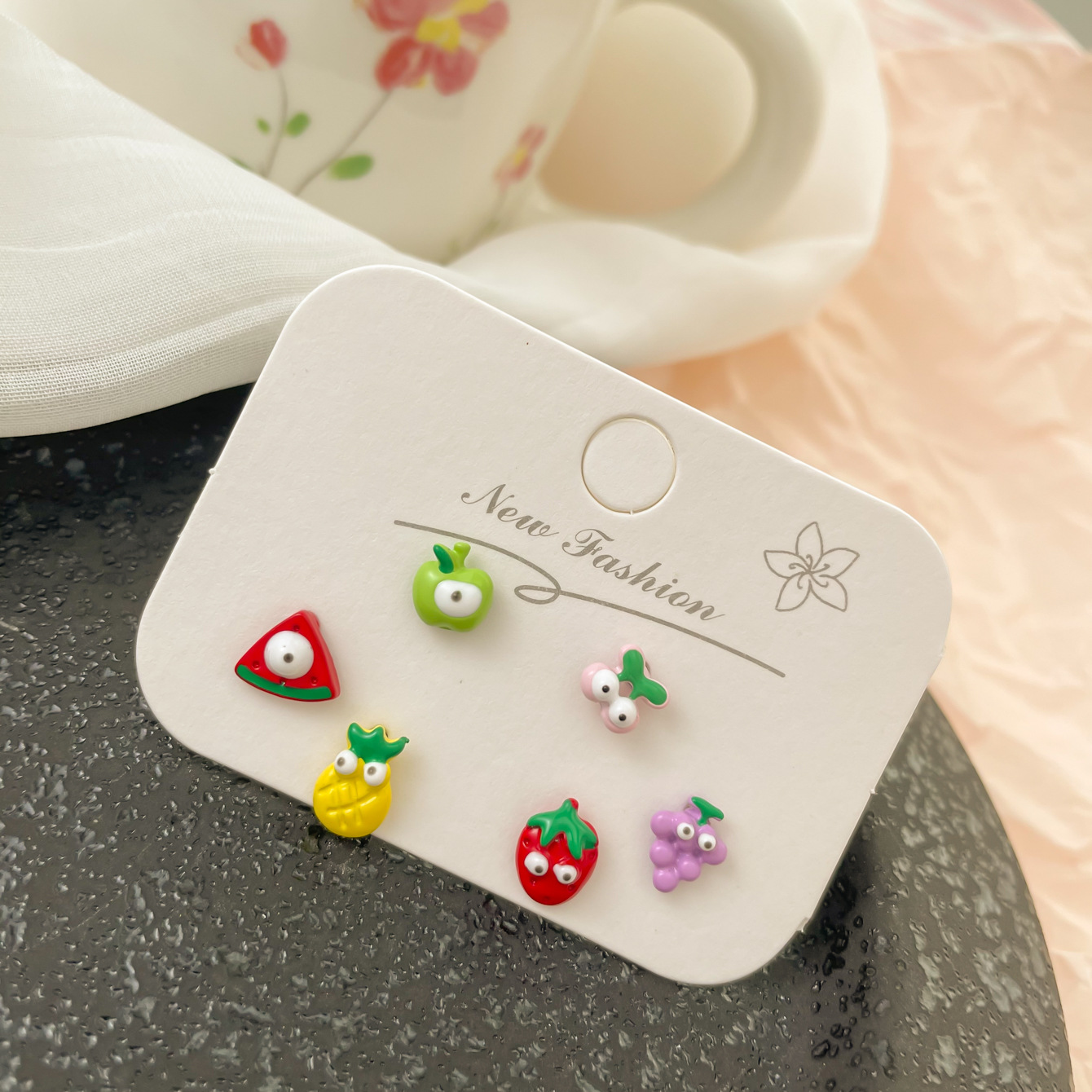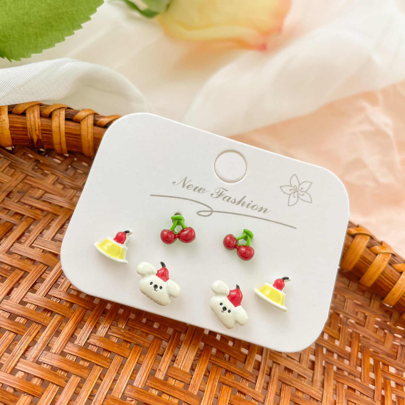 여성을 위한 신선하고 귀여운 모조 실버 바늘 귀걸이, 작고 절묘한 귀걸이, 귀를 위한 고급 만화 어린이 귀걸이