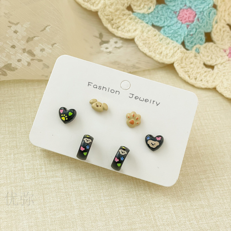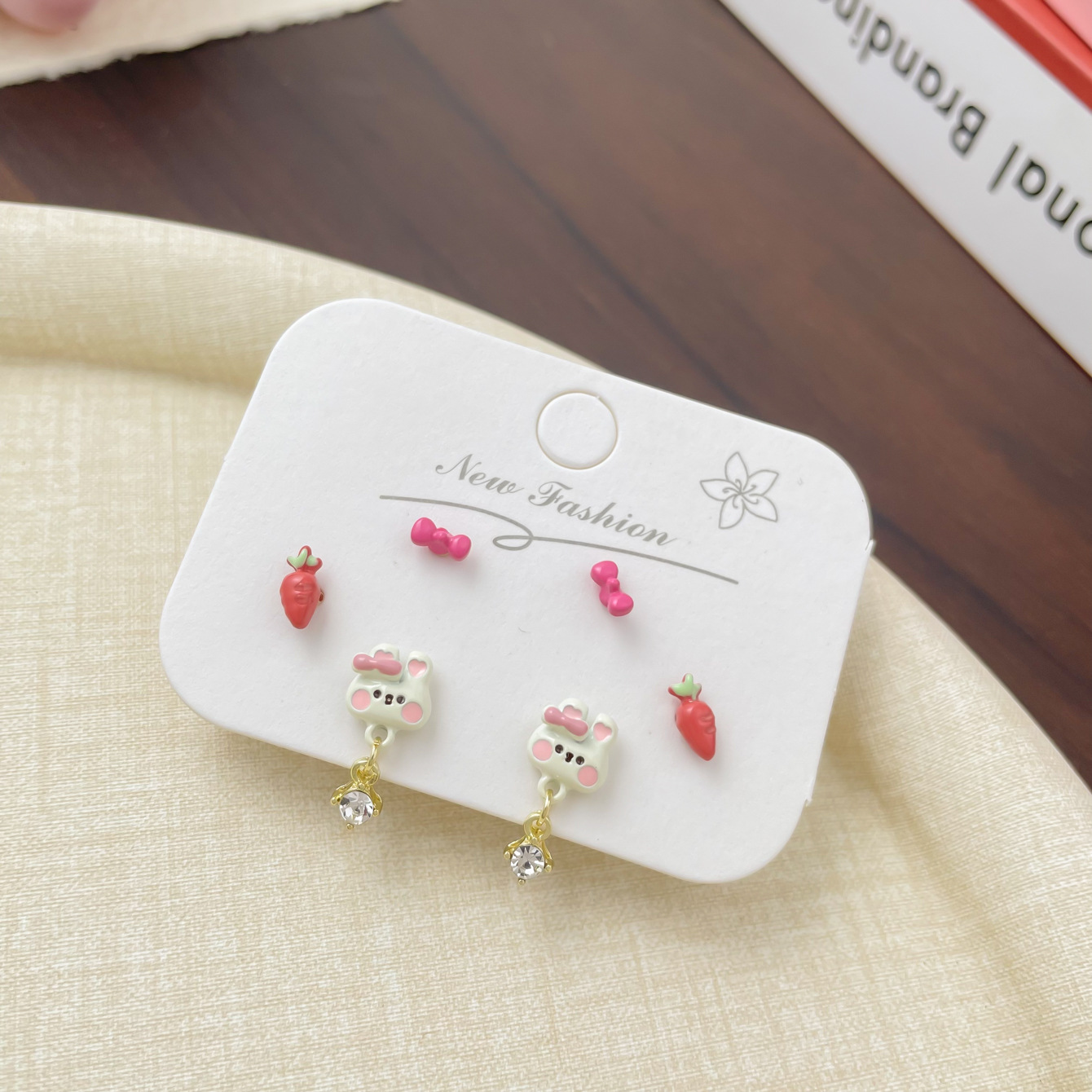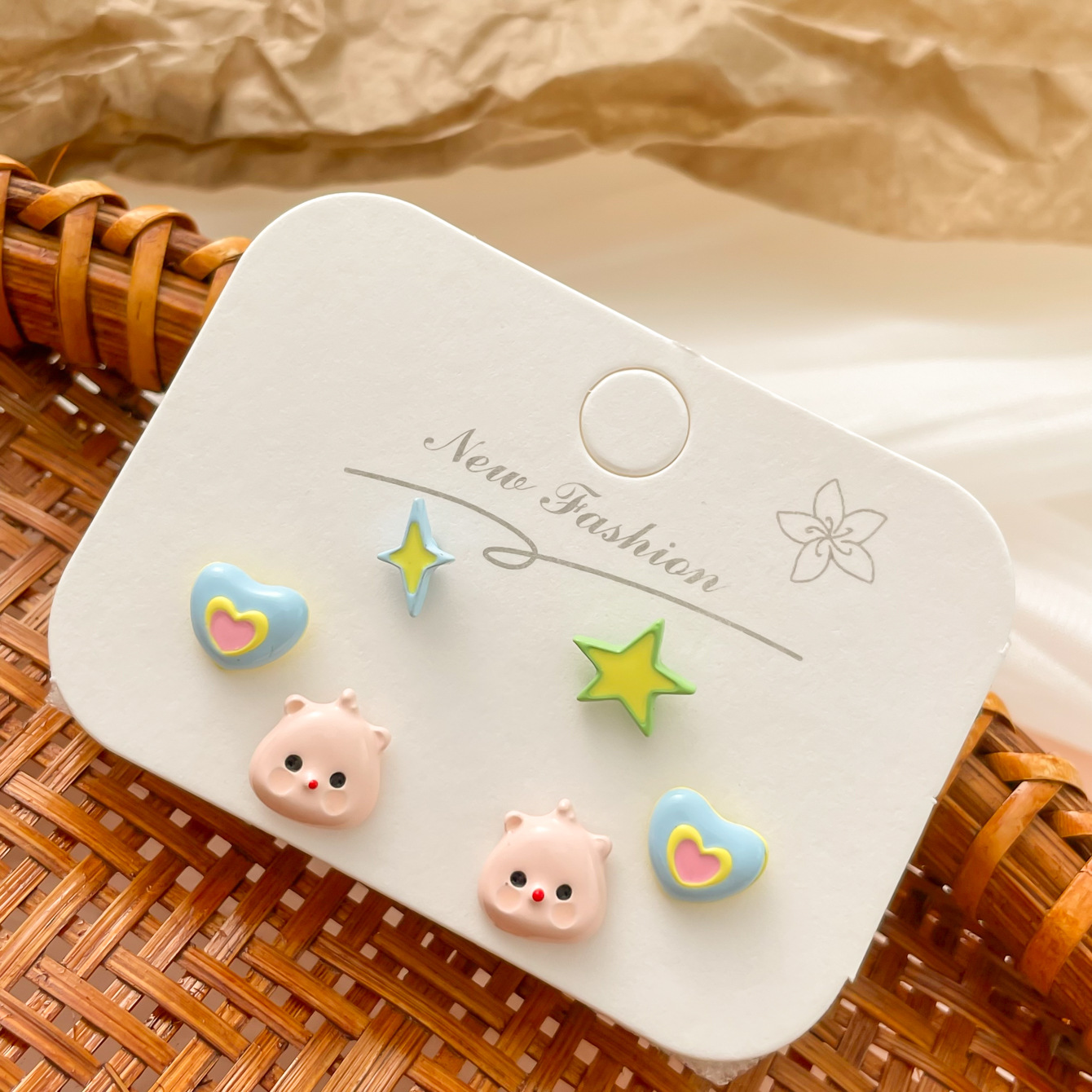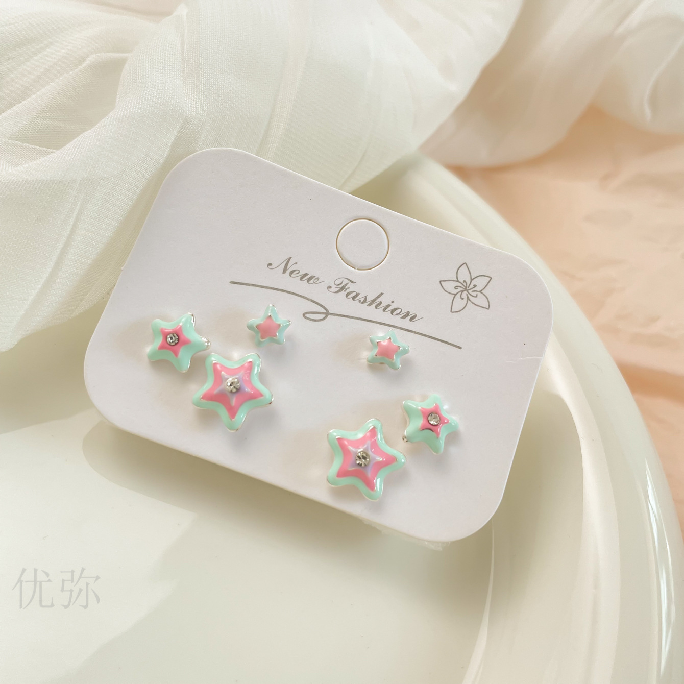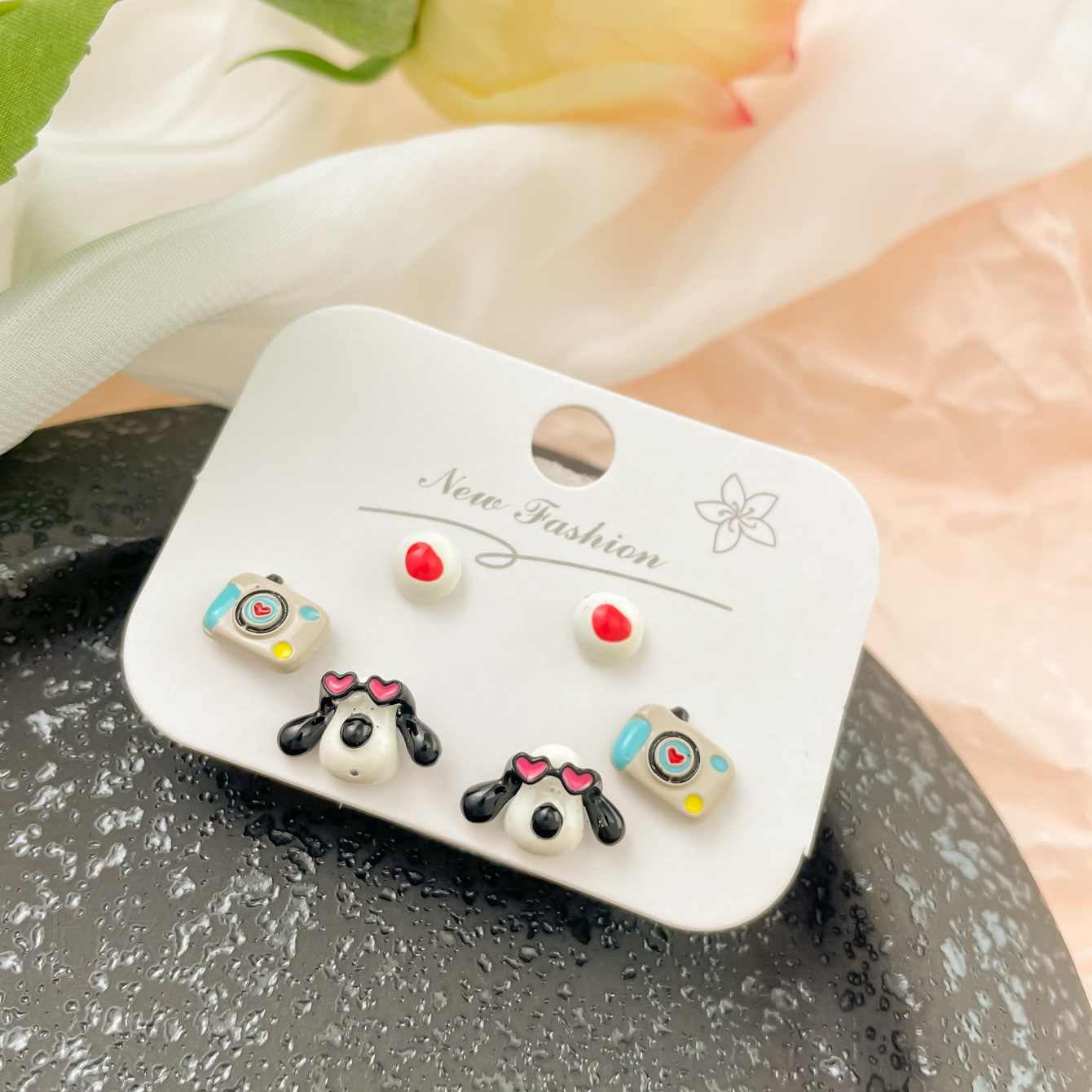 여성을 위한 신선하고 귀여운 모조 실버 바늘 귀걸이, 작고 절묘한 귀걸이, 귀를 위한 고급 만화 어린이 귀걸이