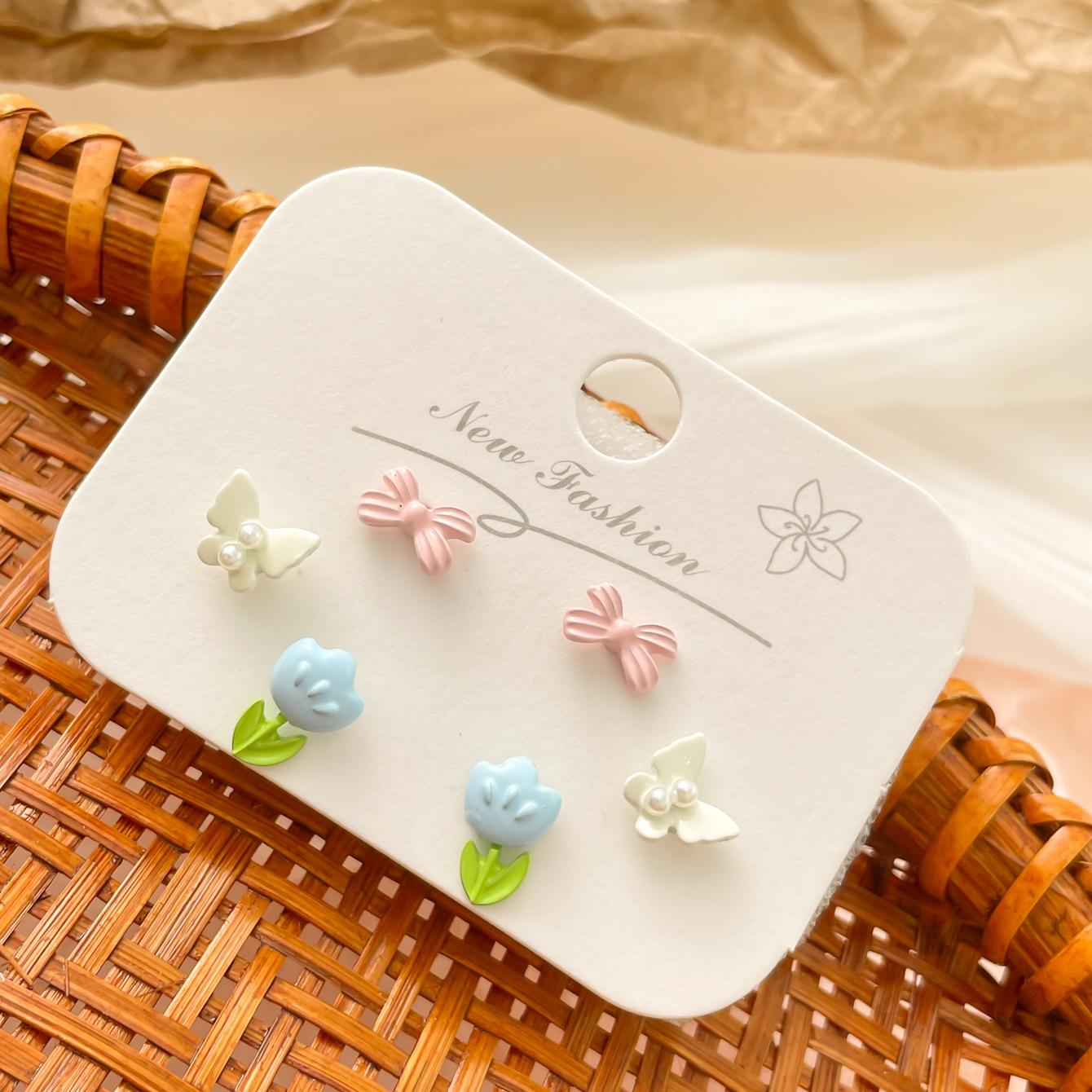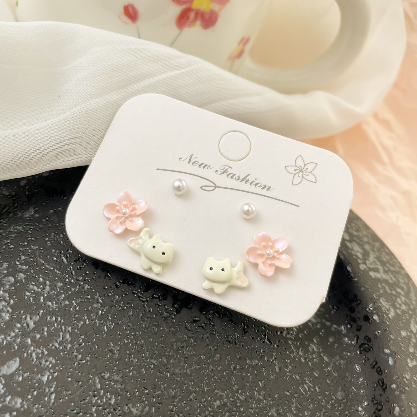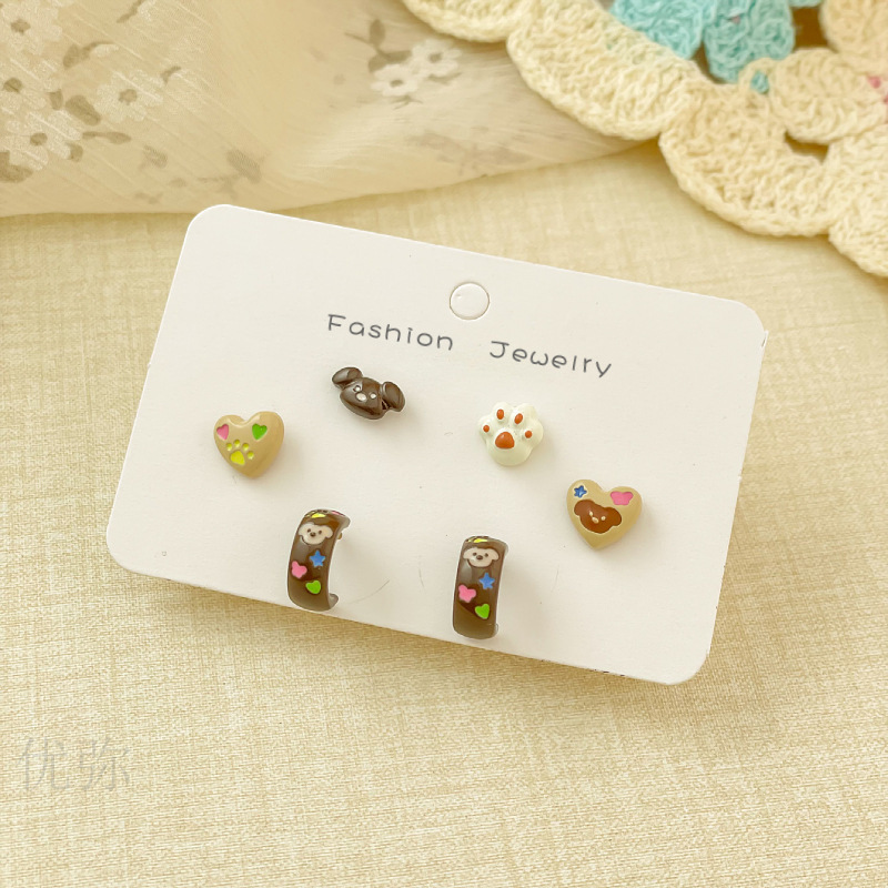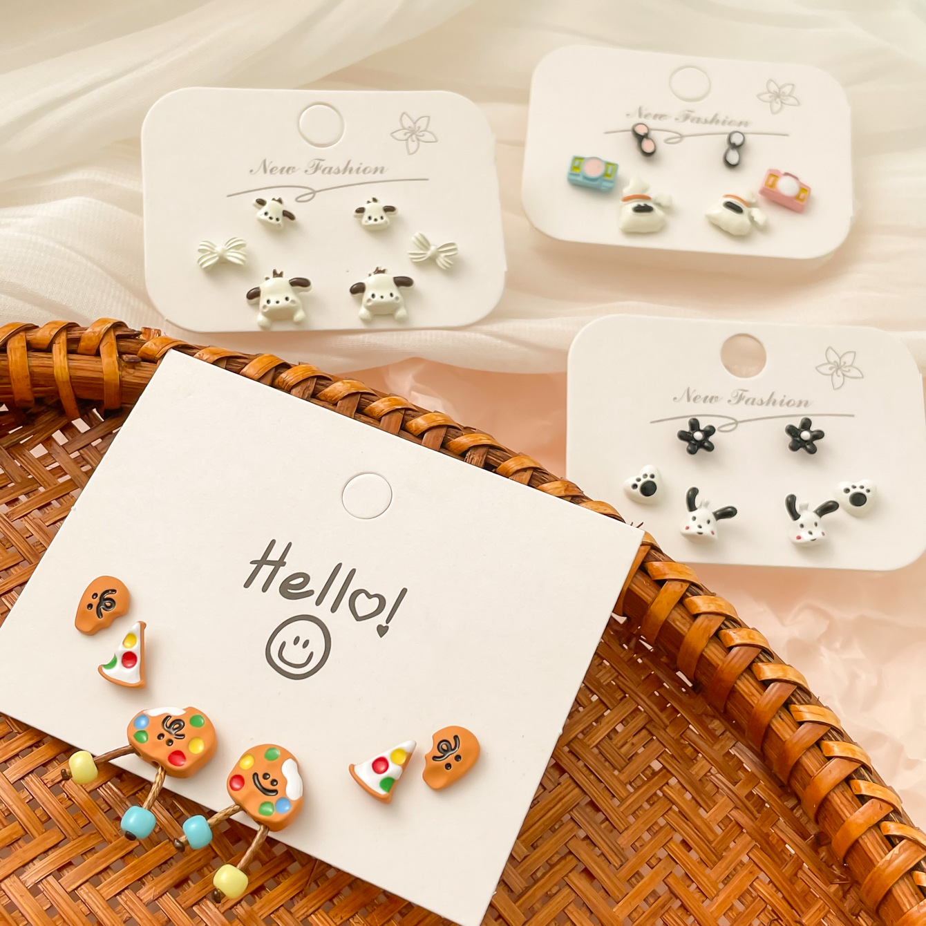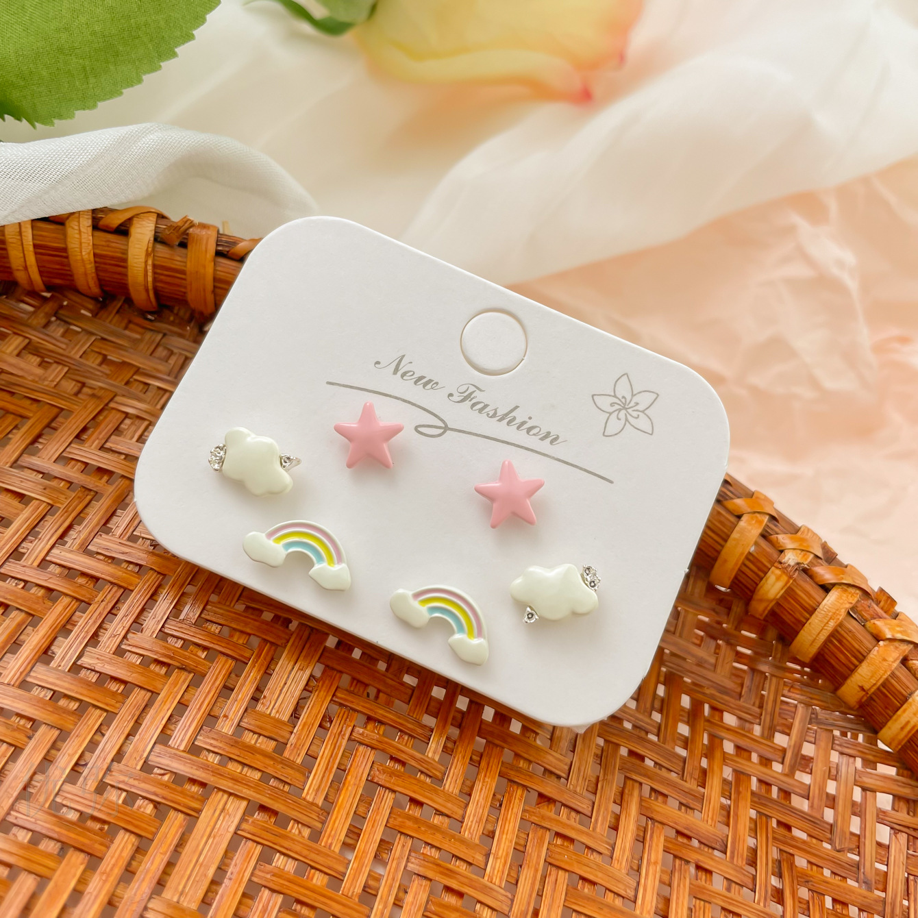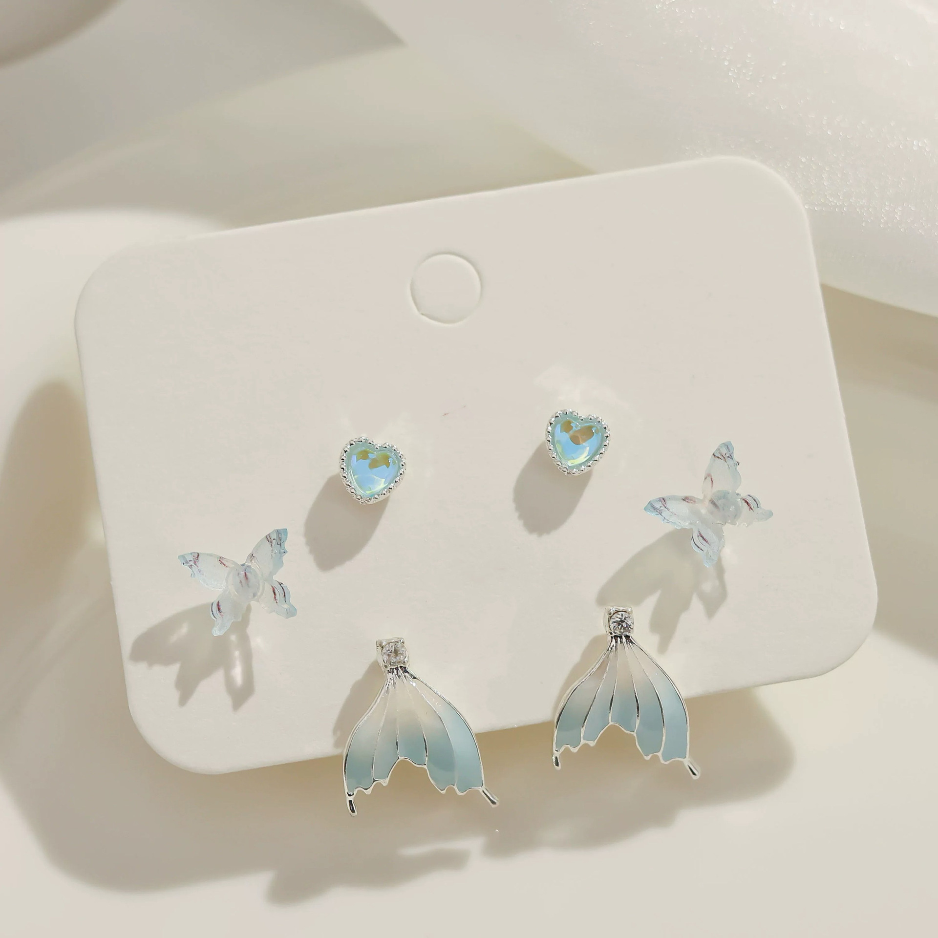 여성을 위한 신선하고 귀여운 모조 실버 바늘 귀걸이, 작고 절묘한 귀걸이, 귀를 위한 고급 만화 어린이 귀걸이