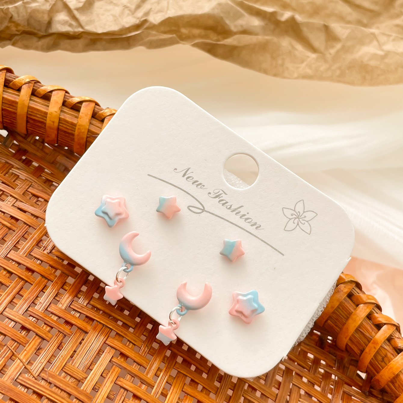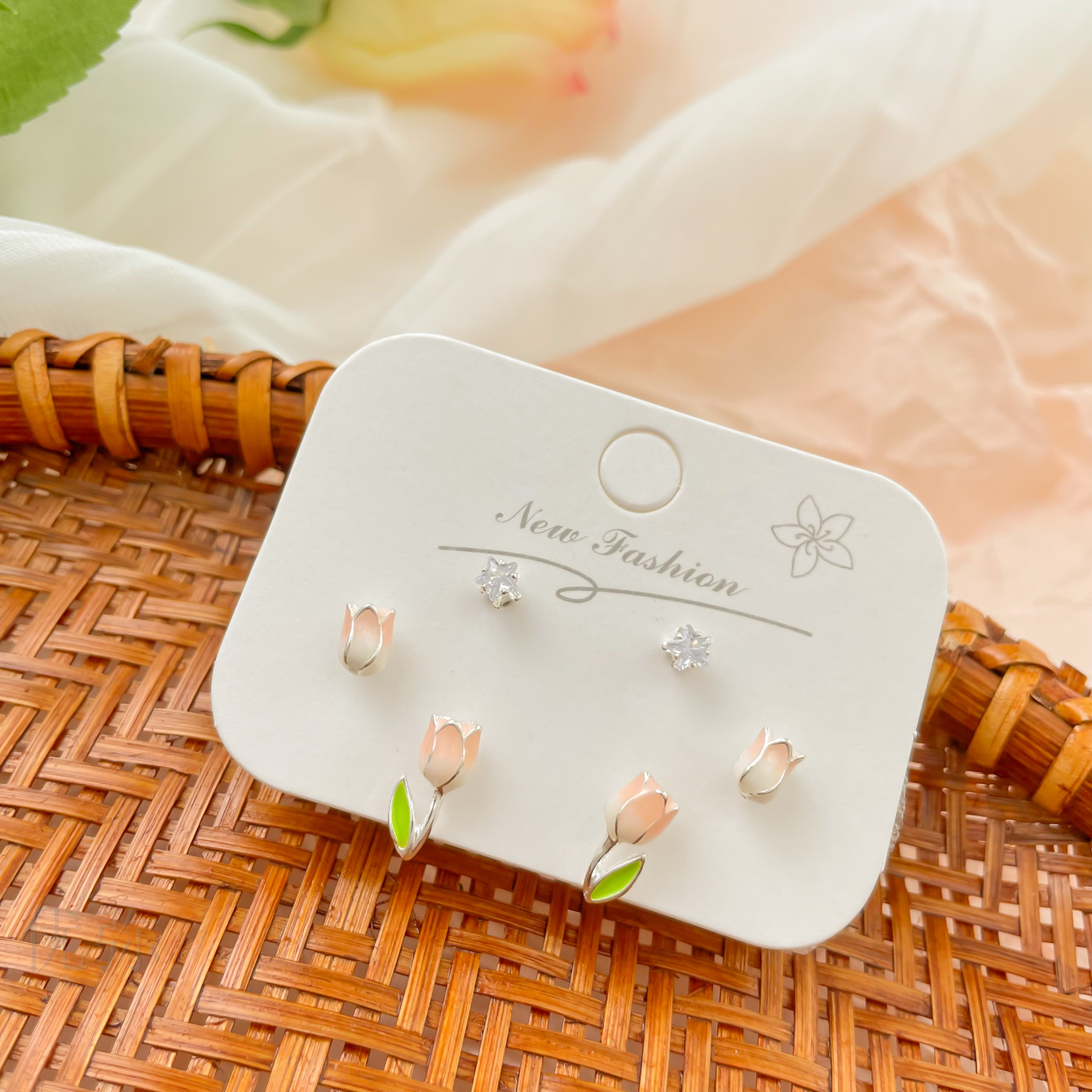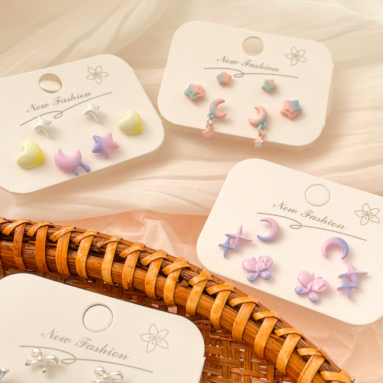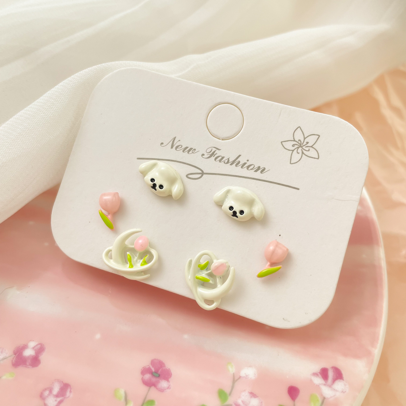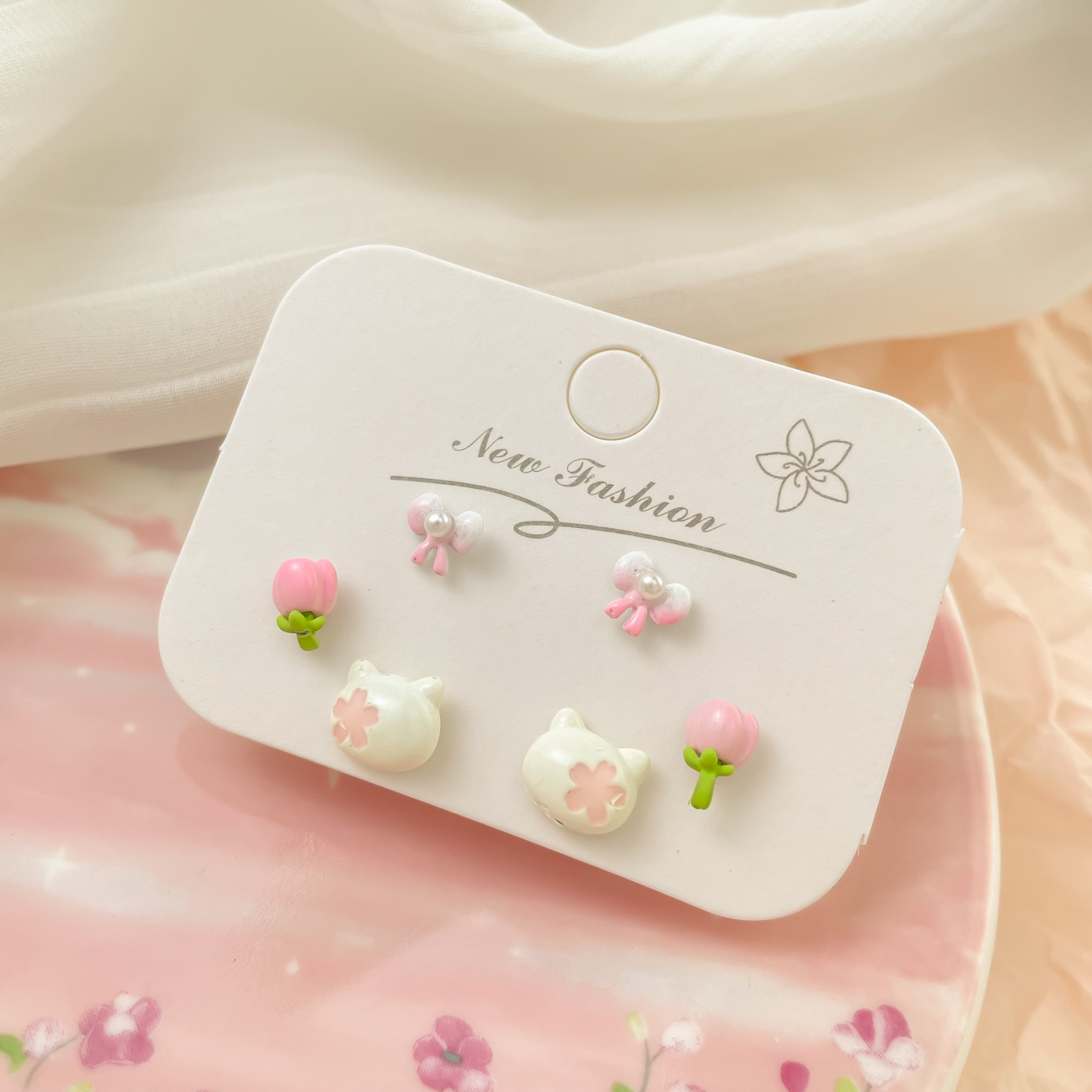 여성을 위한 신선하고 귀여운 모조 실버 바늘 귀걸이, 작고 절묘한 귀걸이, 귀를 위한 고급 만화 어린이 귀걸이
