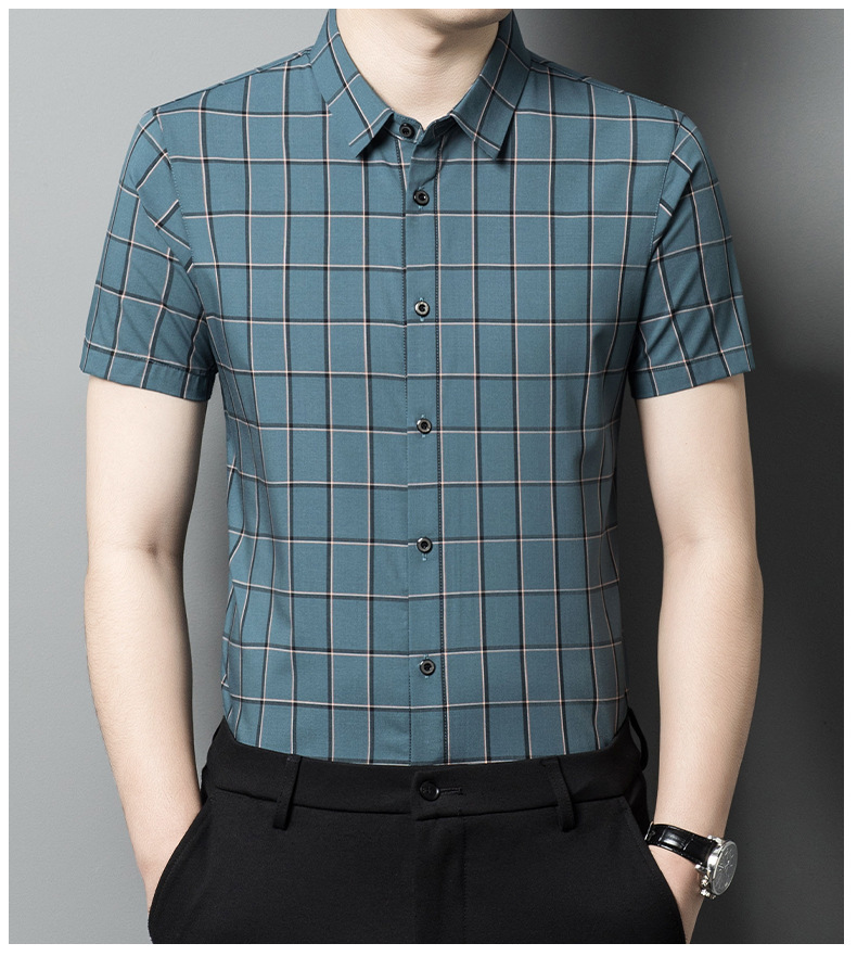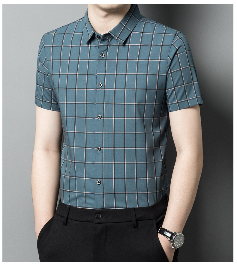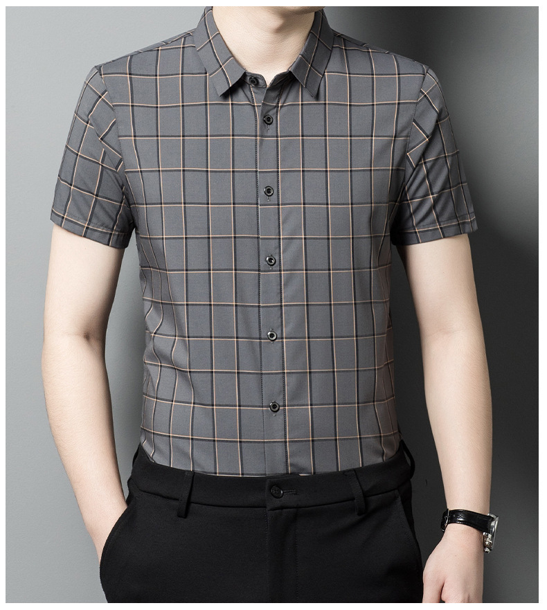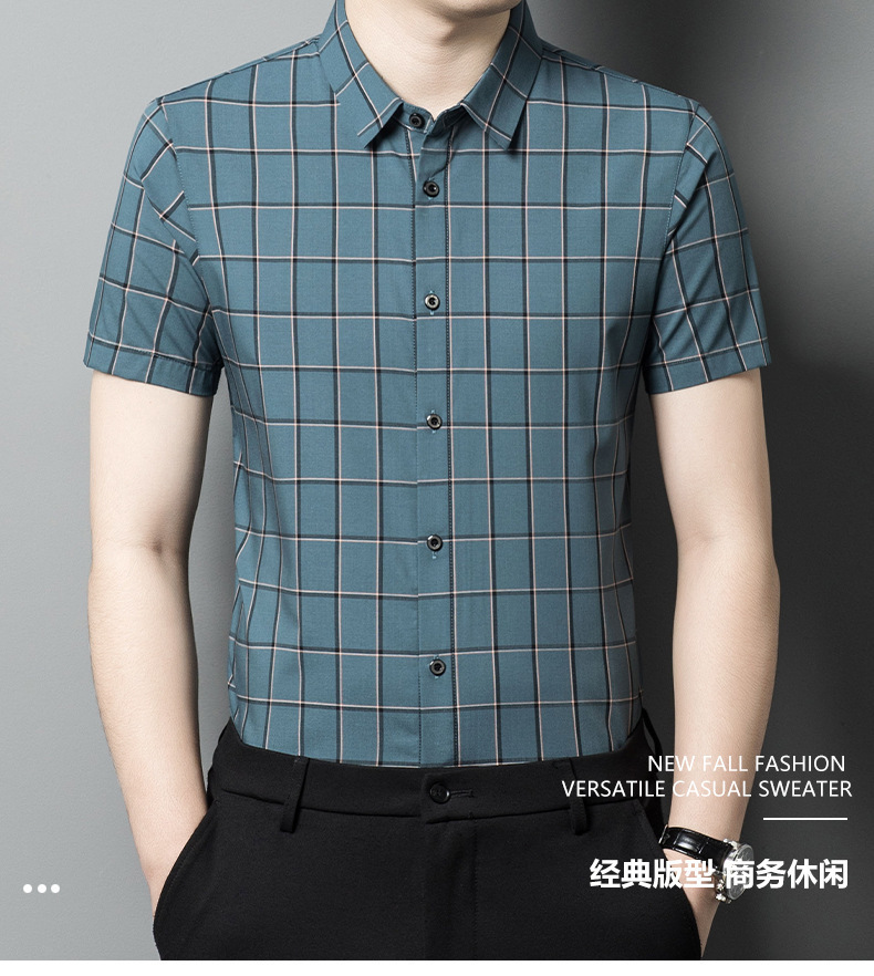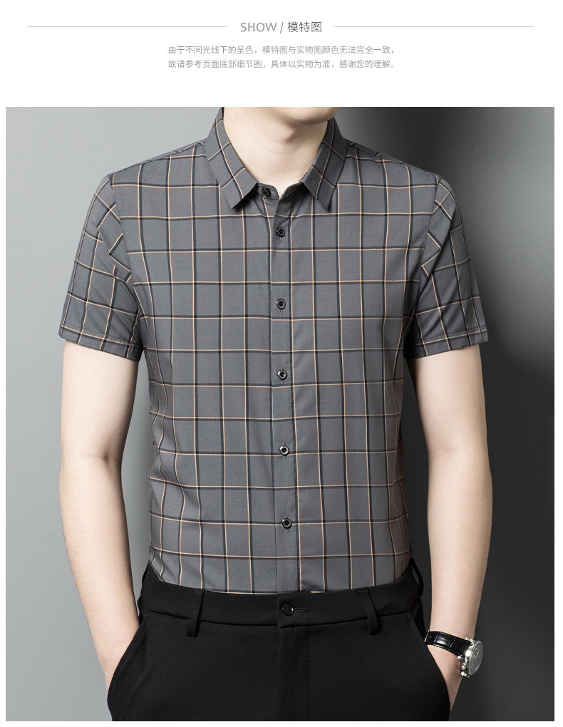 2024年夏季男士短袖衬衫商务休闲梭织衬衣中青年免烫时尚格子衬衫