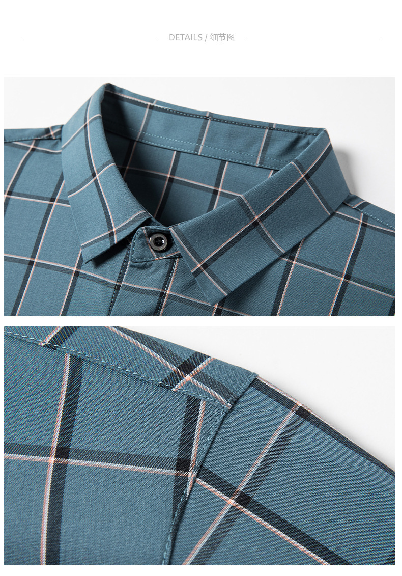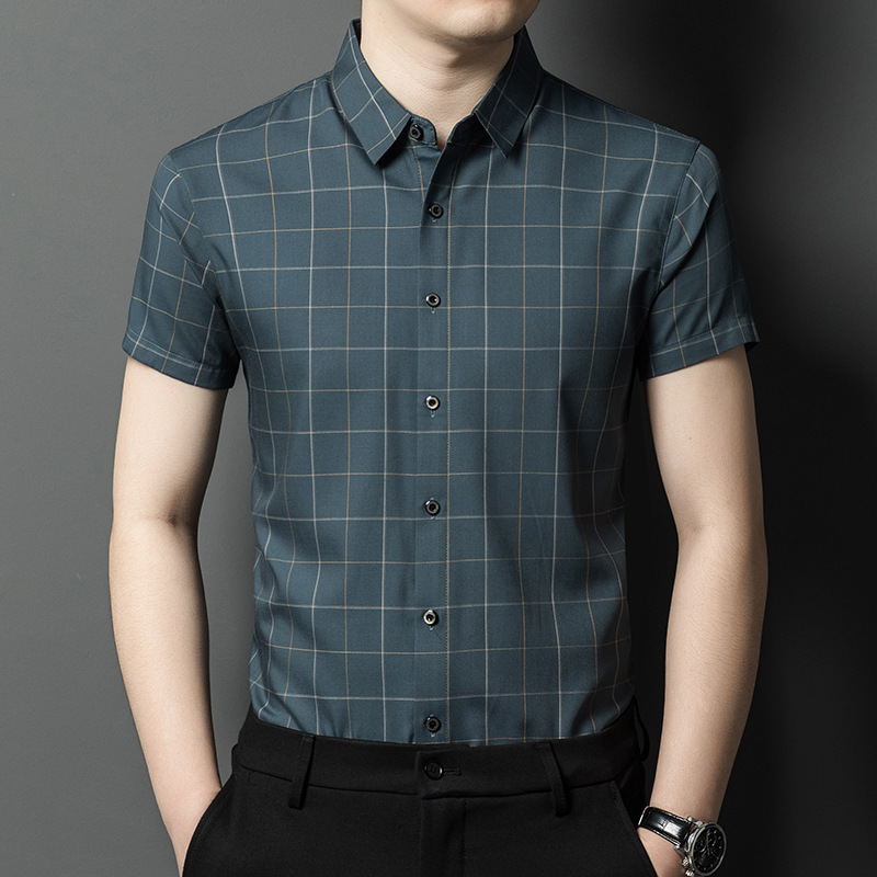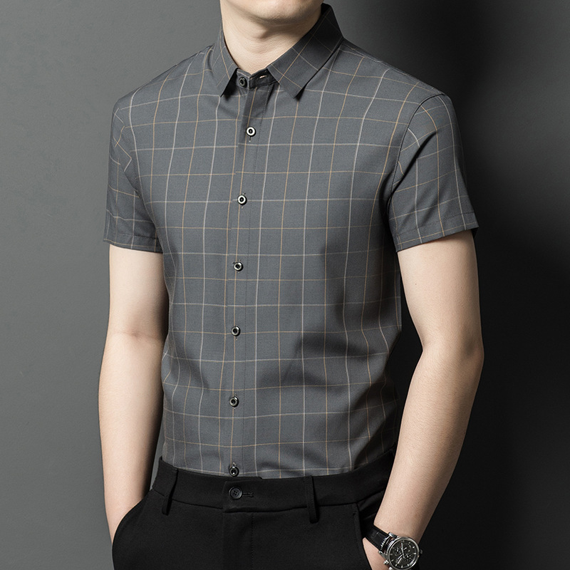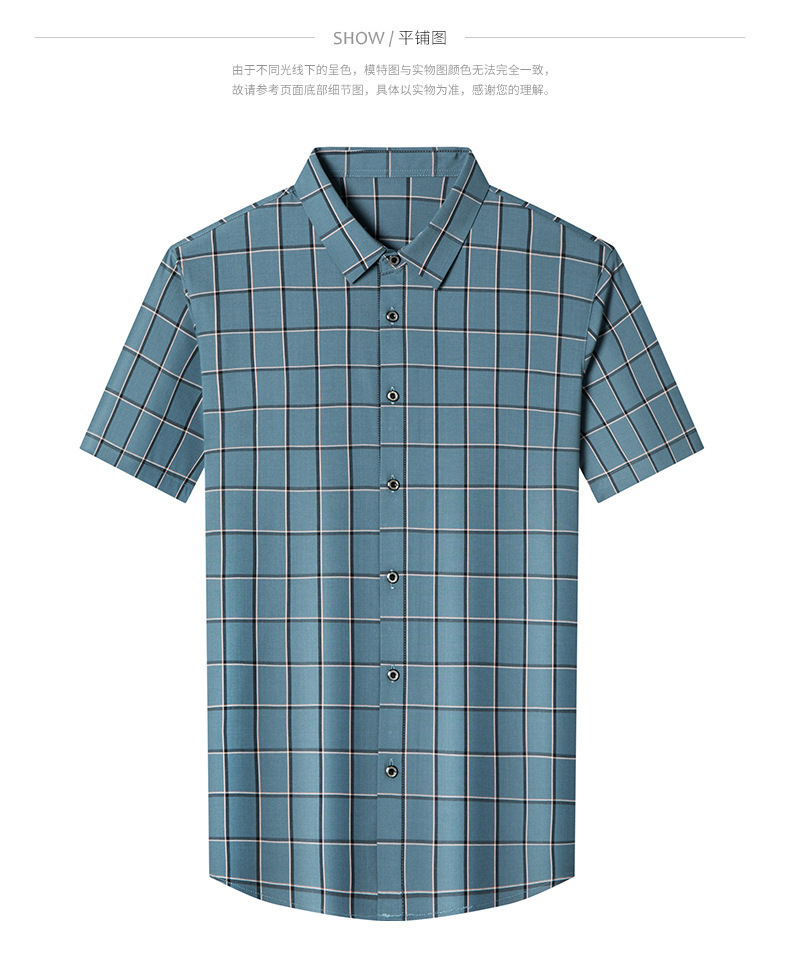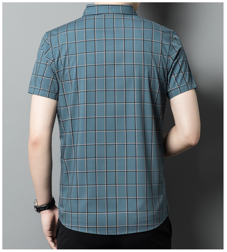 2024年夏季男士短袖衬衫商务休闲梭织衬衣中青年免烫时尚格子衬衫