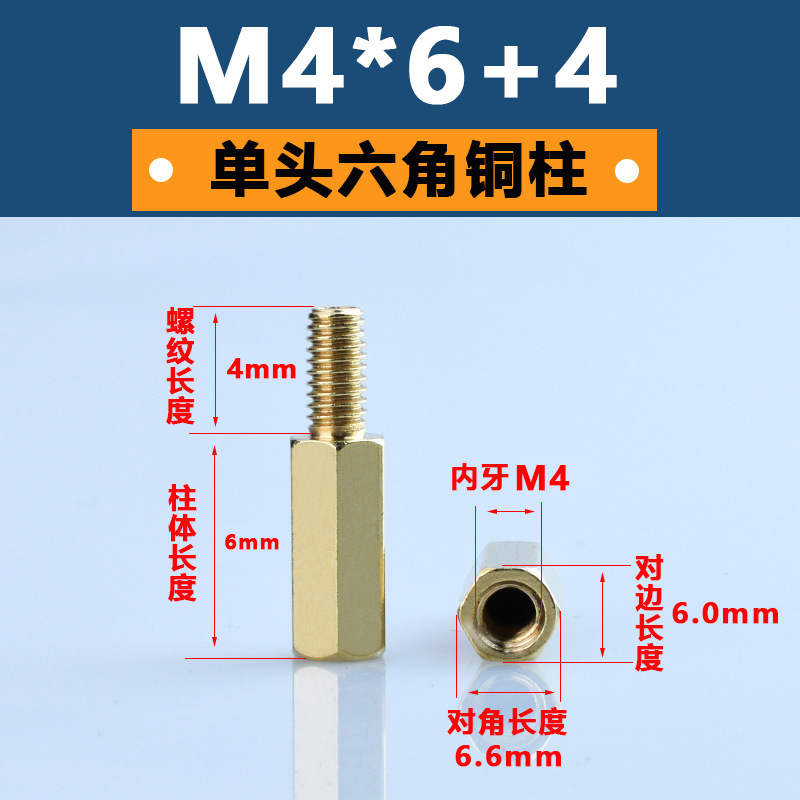 • 단일 헤드 육각형 구리 열 M4 * 6