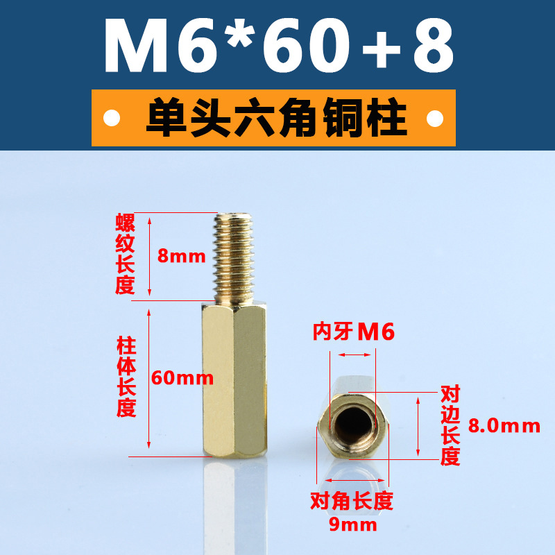 • 단일 헤드 육각형 구리 열 M6 * 60 8