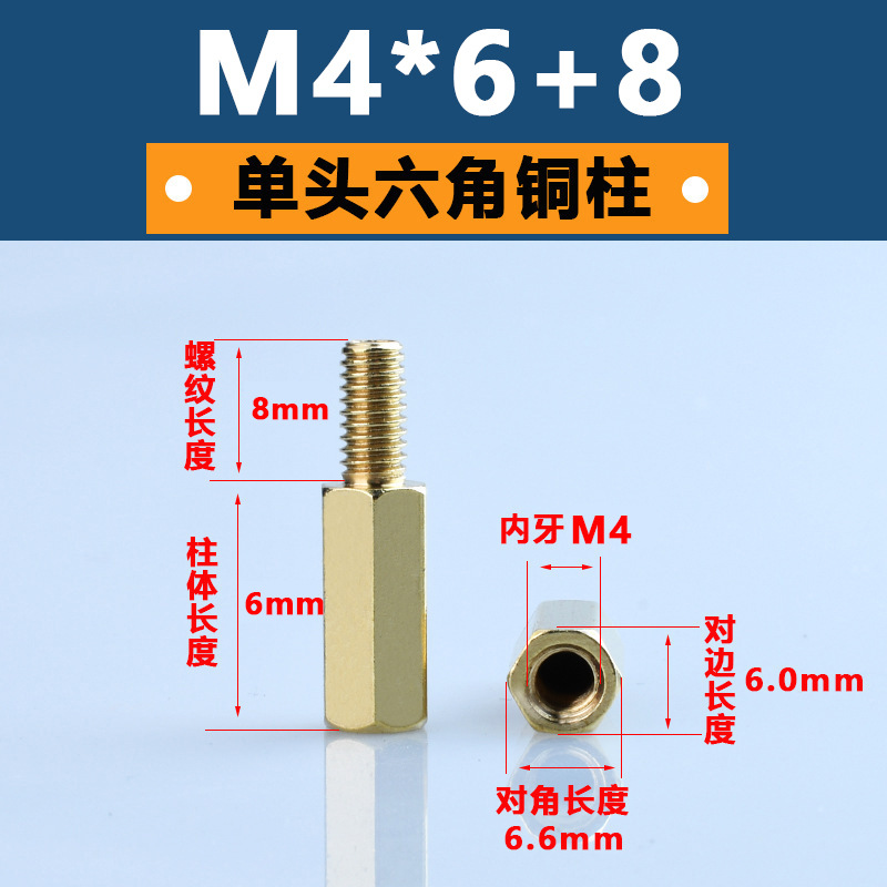 • 단일 헤드 육각형 구리 열 M4 * 14 6