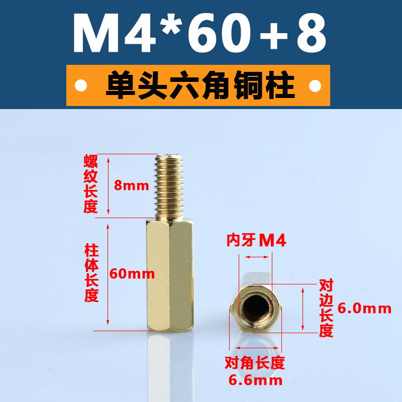 • 단일 헤드 육각형 구리 열 M4 * 60 8