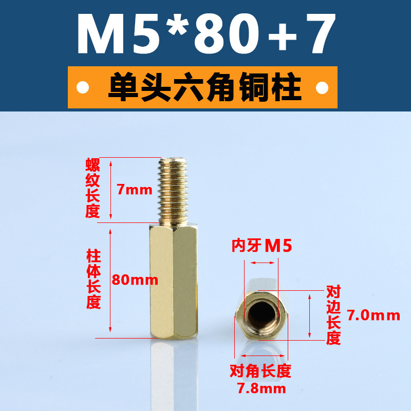 • 단일 헤드 육각형 구리 열 M5 * 80 7