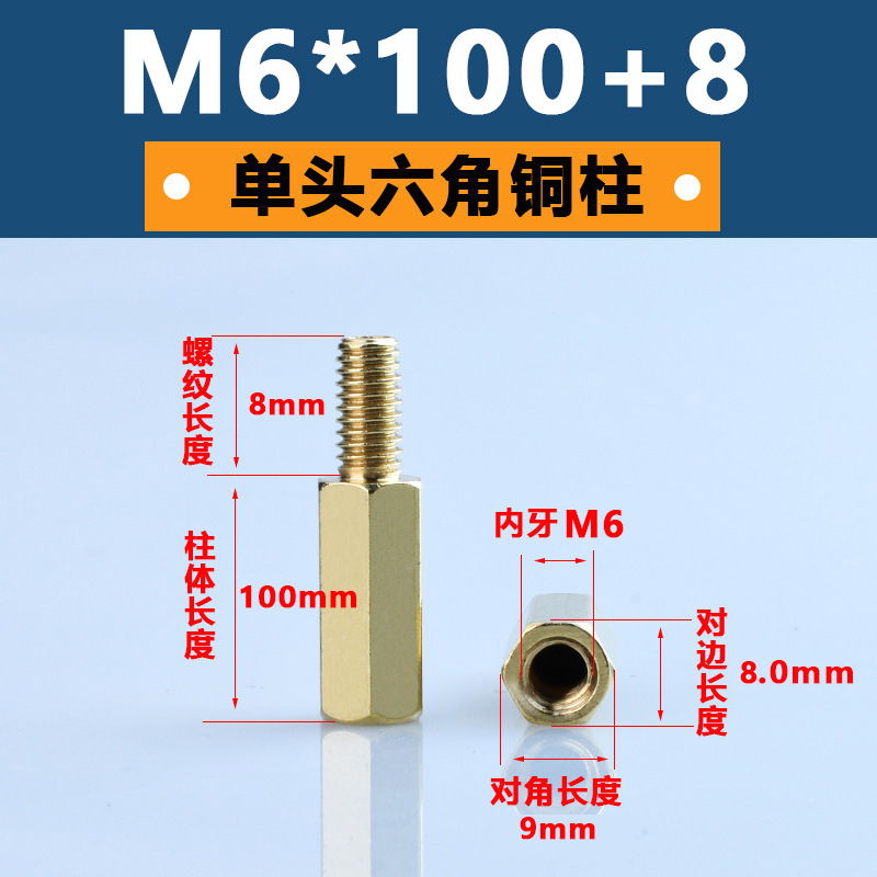 • 단일 헤드 육각형 구리 열 M6 * 100 8