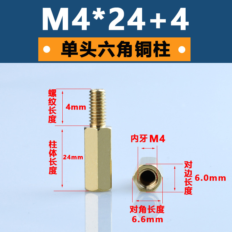 • 단일 헤드 육각형 구리 열 M4 * 24 6