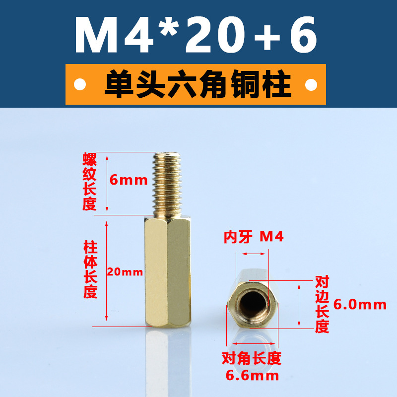 • 단일 헤드 육각형 구리 열 M4 * 26 6