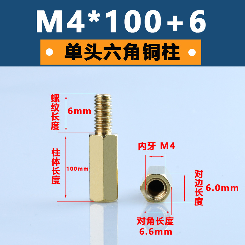 • 단일 헤드 육각형 구리 열 M4 * 100 6