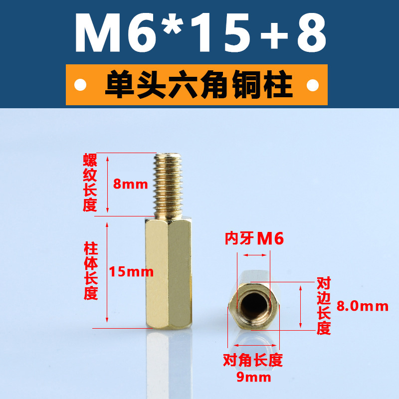 • 단일 헤드 육각형 구리 열 M6 * 15 8