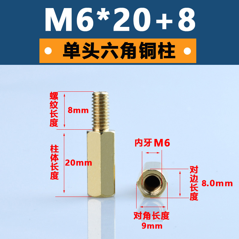 • 단일 헤드 육각형 구리 열 M6 * 20 8