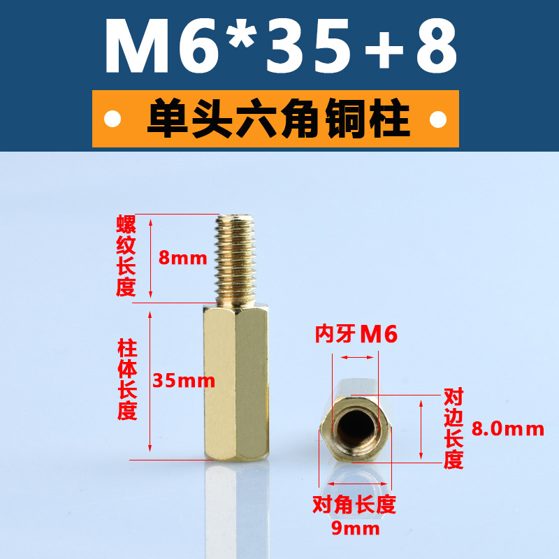 • 단일 헤드 육각형 구리 열 M6 * 35 8
