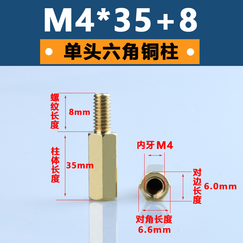 • 단일 헤드 육각형 구리 열 M4 * 35 8