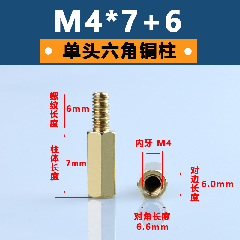 • 단일 헤드 육각형 구리 열 M4 * 7 6