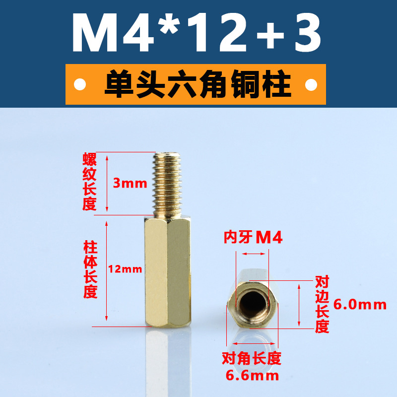 • 단일 헤드 육각형 구리 열 M4 * 13 6