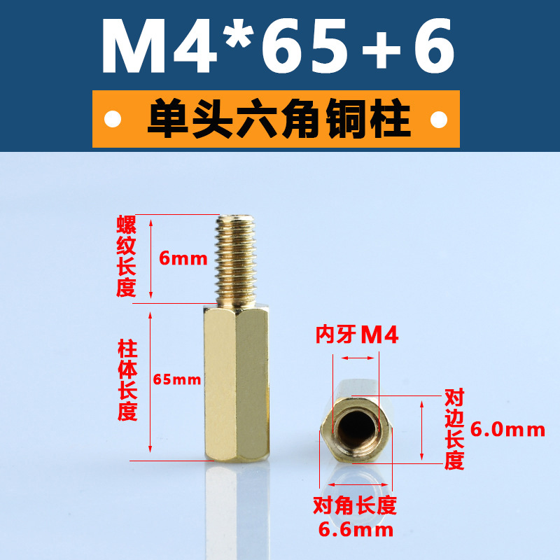 • 단일 헤드 육각형 구리 열 M4 * 65 6