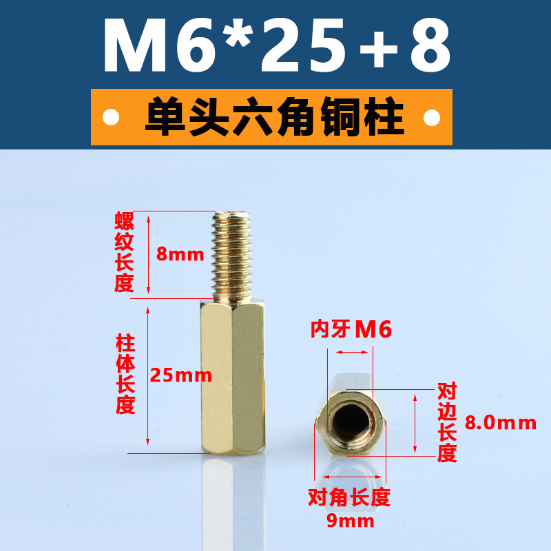 • 단일 헤드 육각형 구리 열 M6 * 25 8