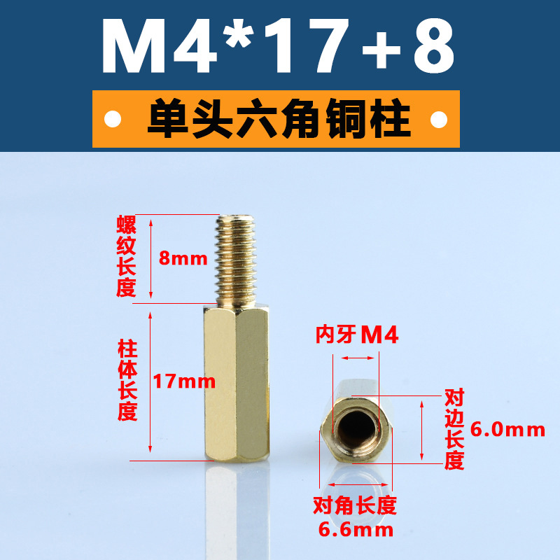 • 단일 헤드 육각형 구리 열 M4 * 17 6