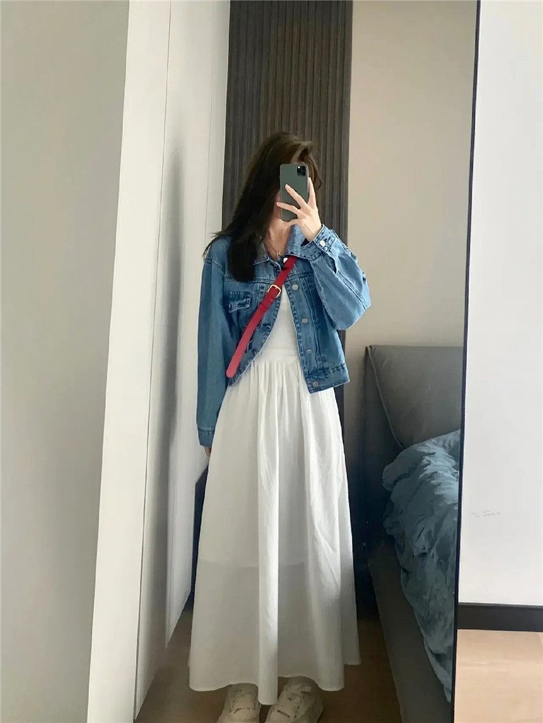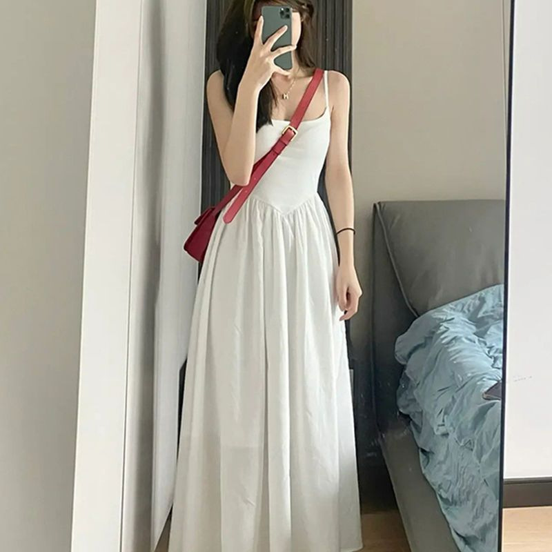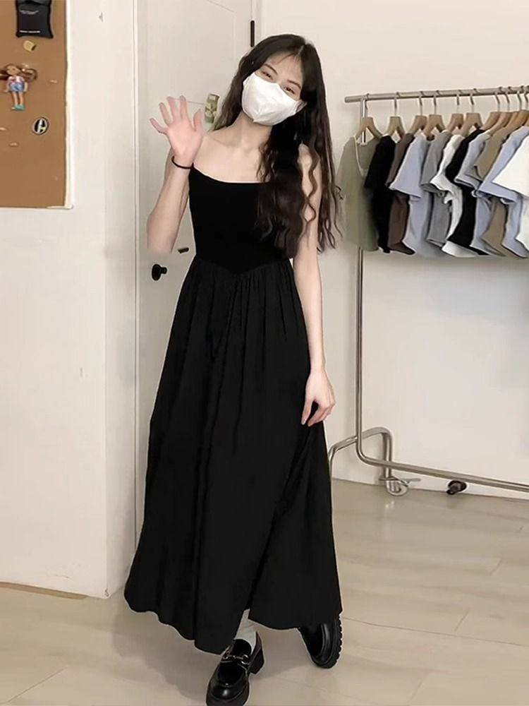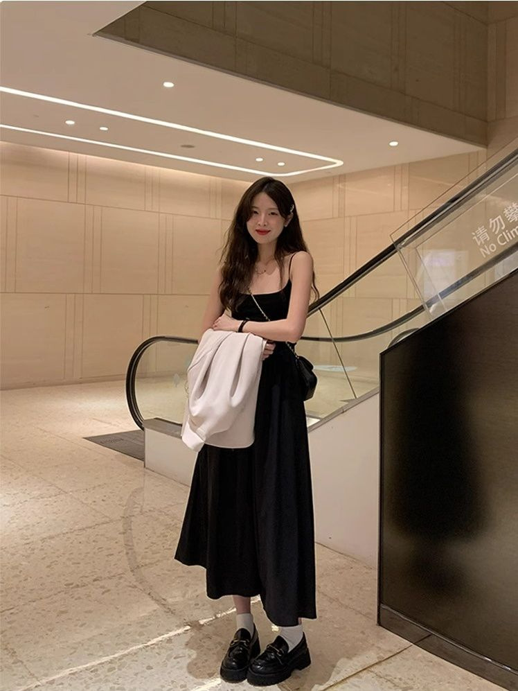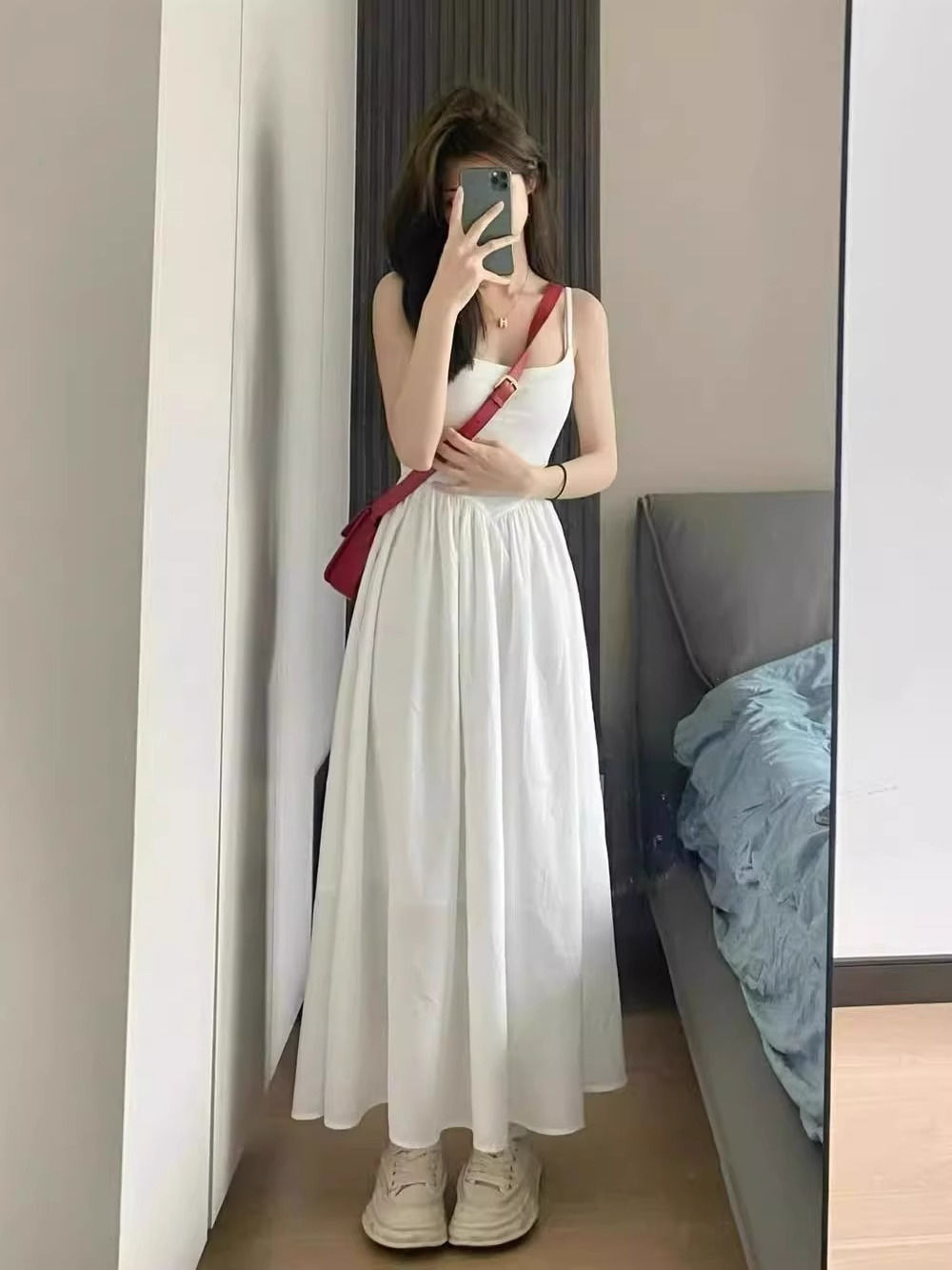 이른 봄 우아한 꽉 허리 슬리밍 긴 치마 프랑스 스타일 첫사랑 센스 화이트 스커트 슬링 A 라인 스커트 헵번 스타일 블랙 스커트스토어 가기