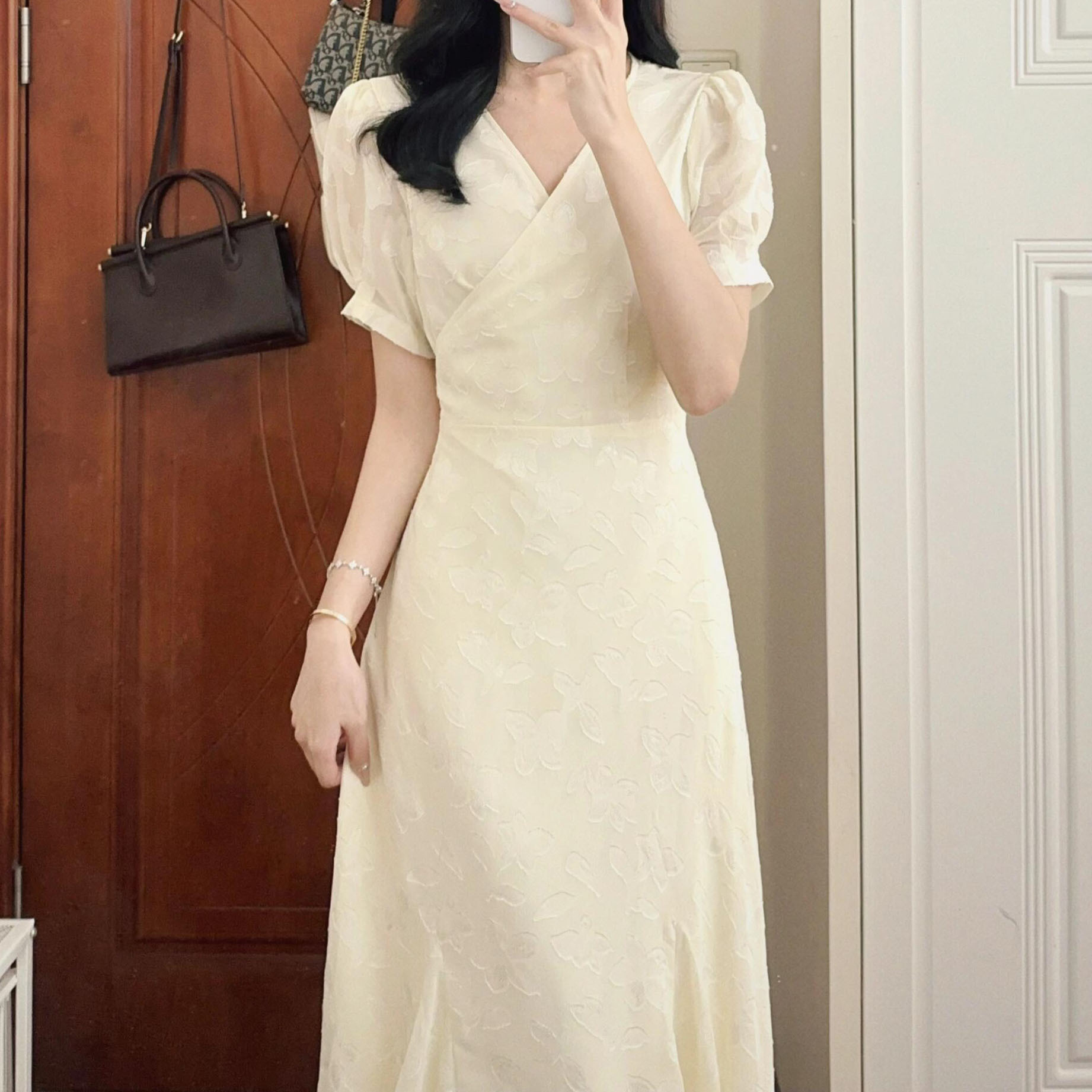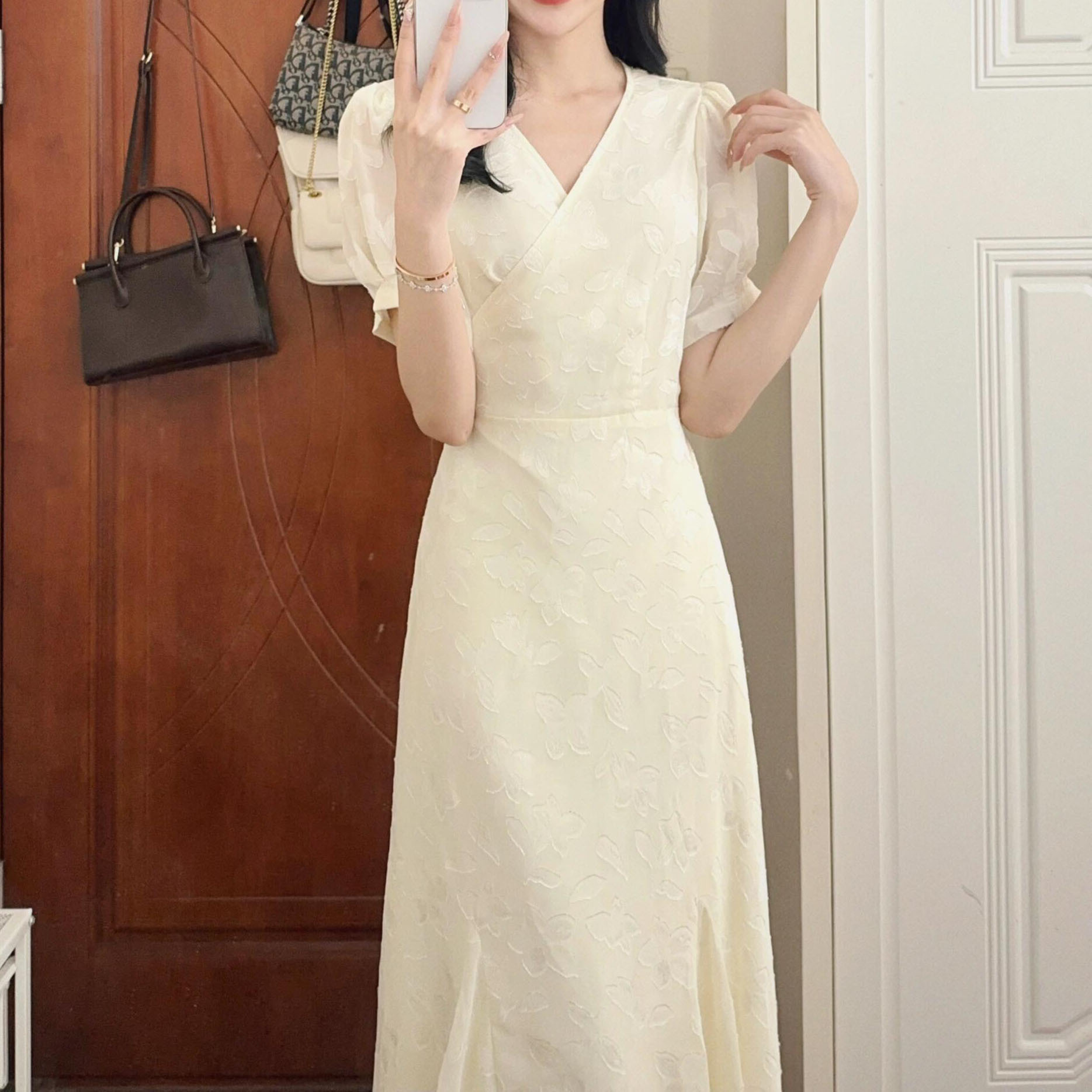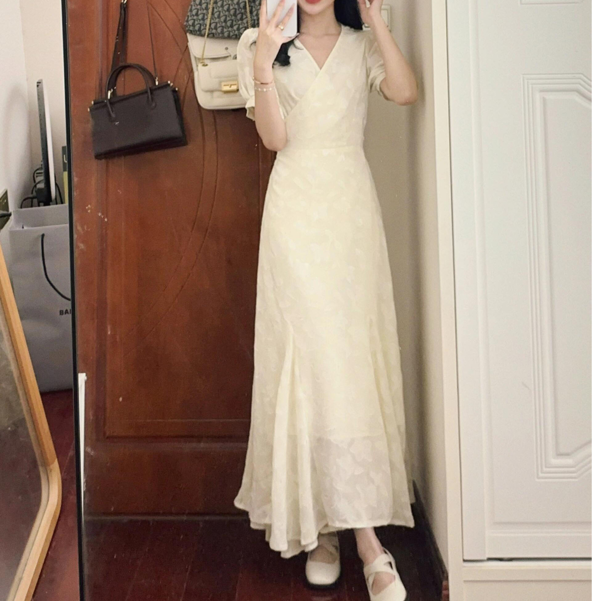 새로운 중국 스타일 빛 국가 스타일 흰색 꽃 원피스 여성의 2024 새로운 여름 차 브레이크 프랑스 스타일 우아한 긴 원피스스토어 가기