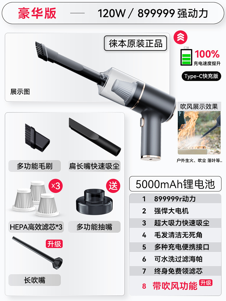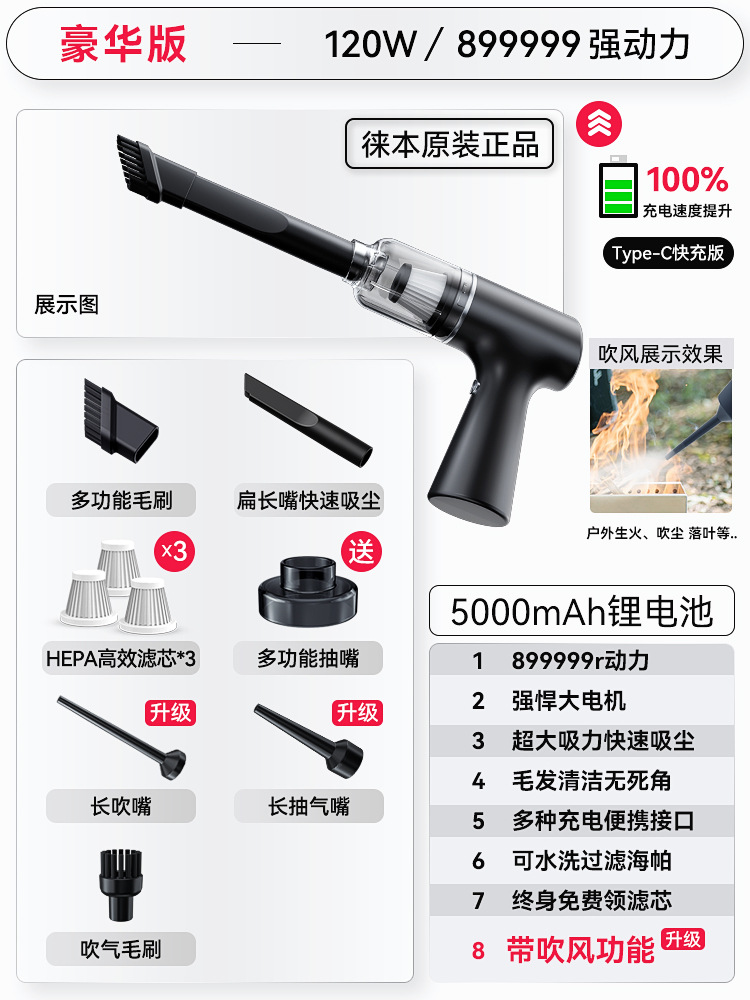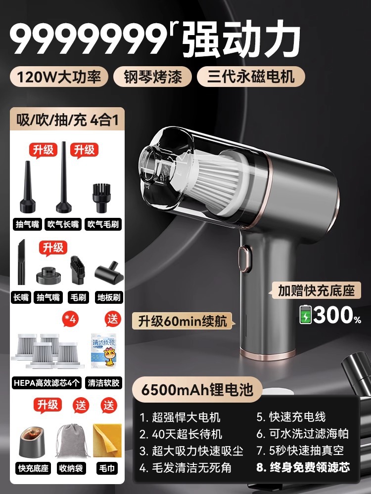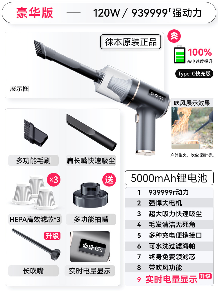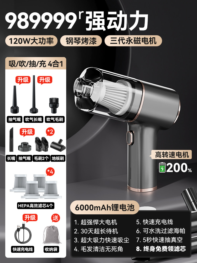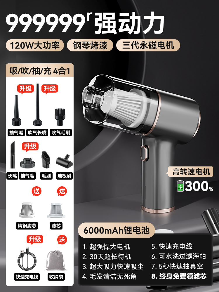 • 럭셔리 모델【899999강력한 흡입력] 고속 충전 + 무료 필터 3개 + 송풍/흡입/공기 추출 노즐