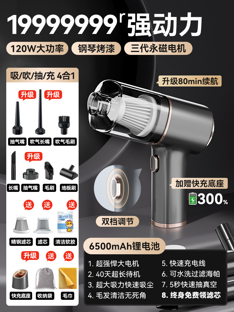 • 플래그십 모델【989999전원 공급 장치] 고속 충전 + 무료 필터 요소 4개 + 흡입/블로우/펌프/충전/4개