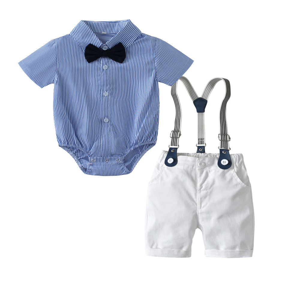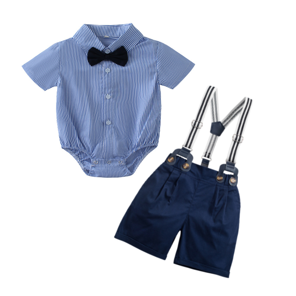 국경 간 유럽과 미국 소년 세트 반팔 줄무늬 반바지 남성 아기 생일 신사 원피스 도매