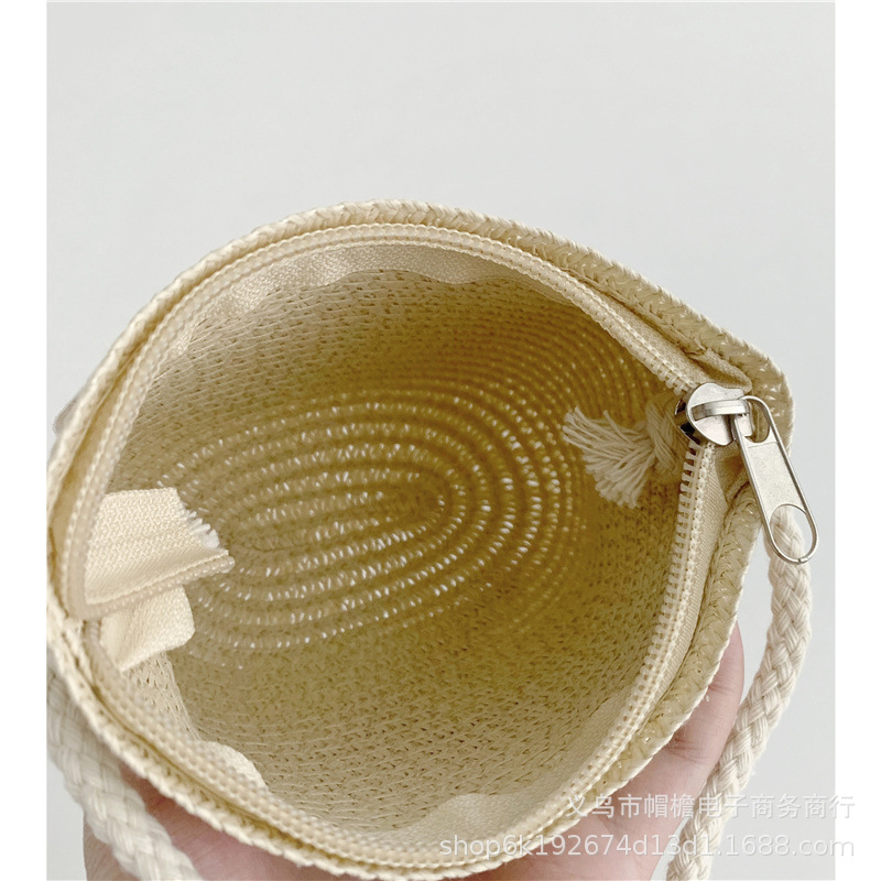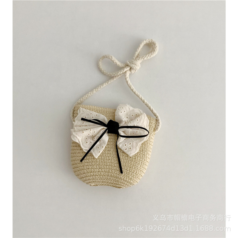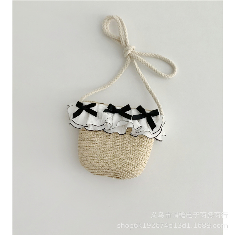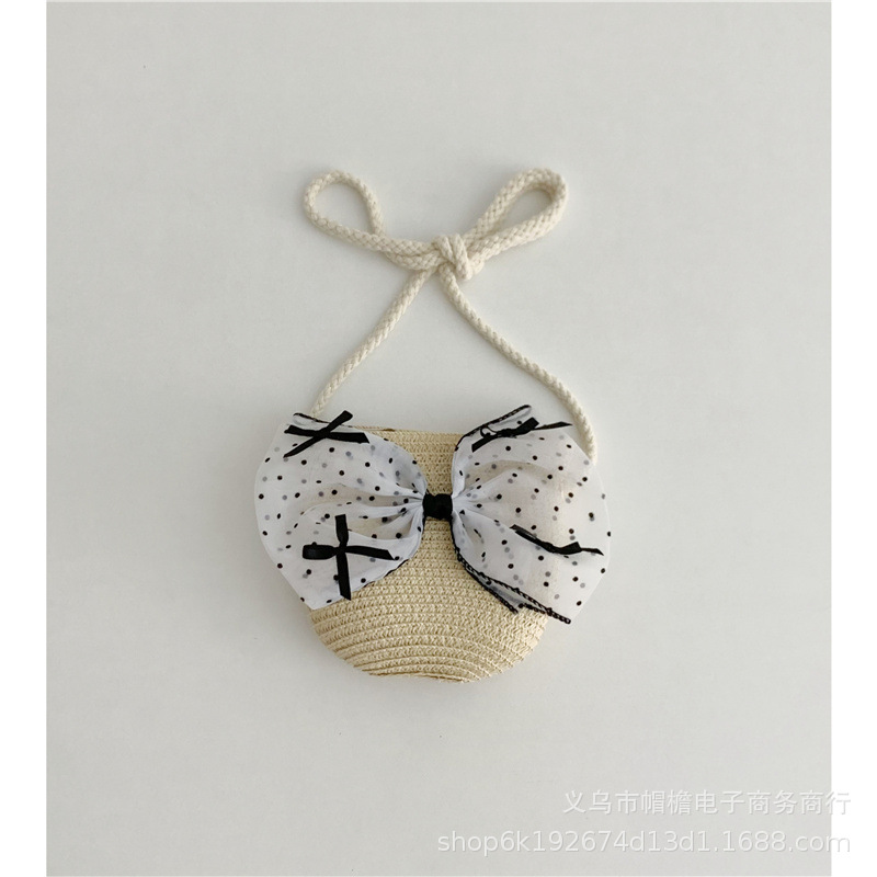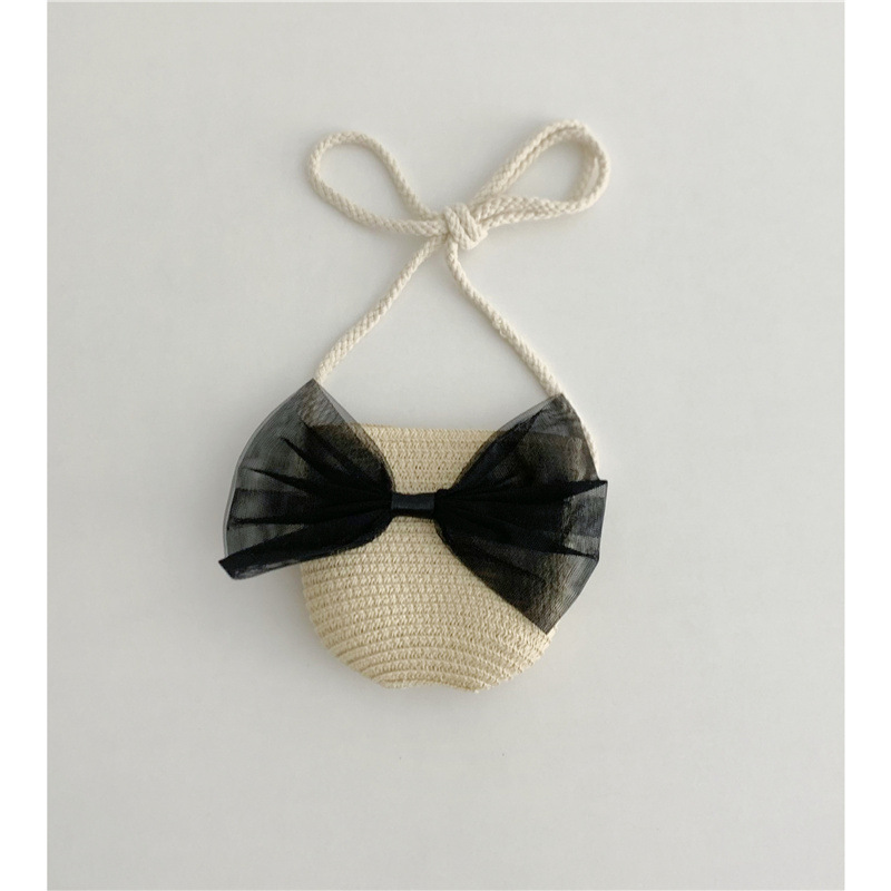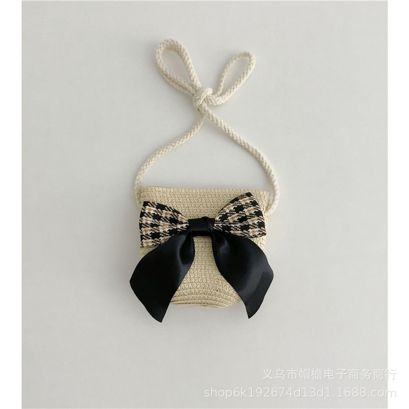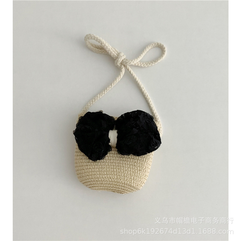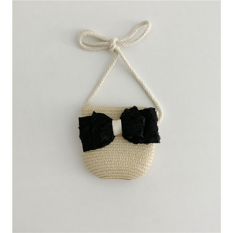 검은 활 크로스 바디 지퍼 가방 동전 지갑을 입고 어린이 여름 밀짚 가방 소녀 스타일리스트