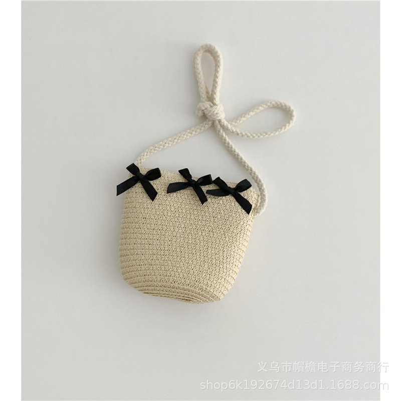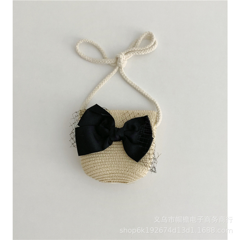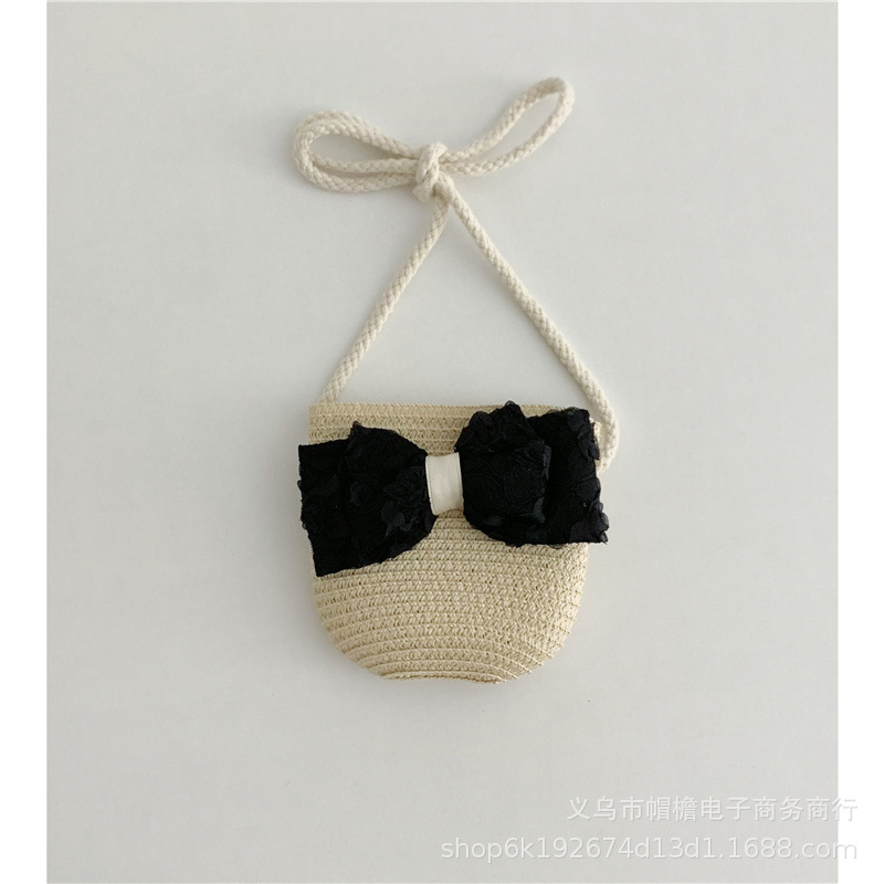 검은 활 크로스 바디 지퍼 가방 동전 지갑을 입고 어린이 여름 밀짚 가방 소녀 스타일리스트스토어 가기