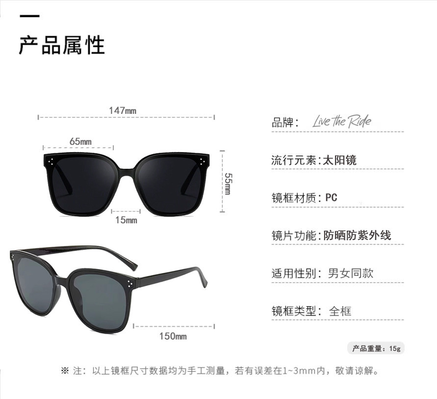 说明:因1688平台透射比抗UV等级只有固定值只可以选择一个,本厂太阳镜镜片UVA(大于315nm小于或等于400nm),UVB(大于280nm小于或等于400nm),平光白片镜片(非太阳镜)不在此范围