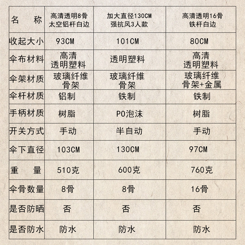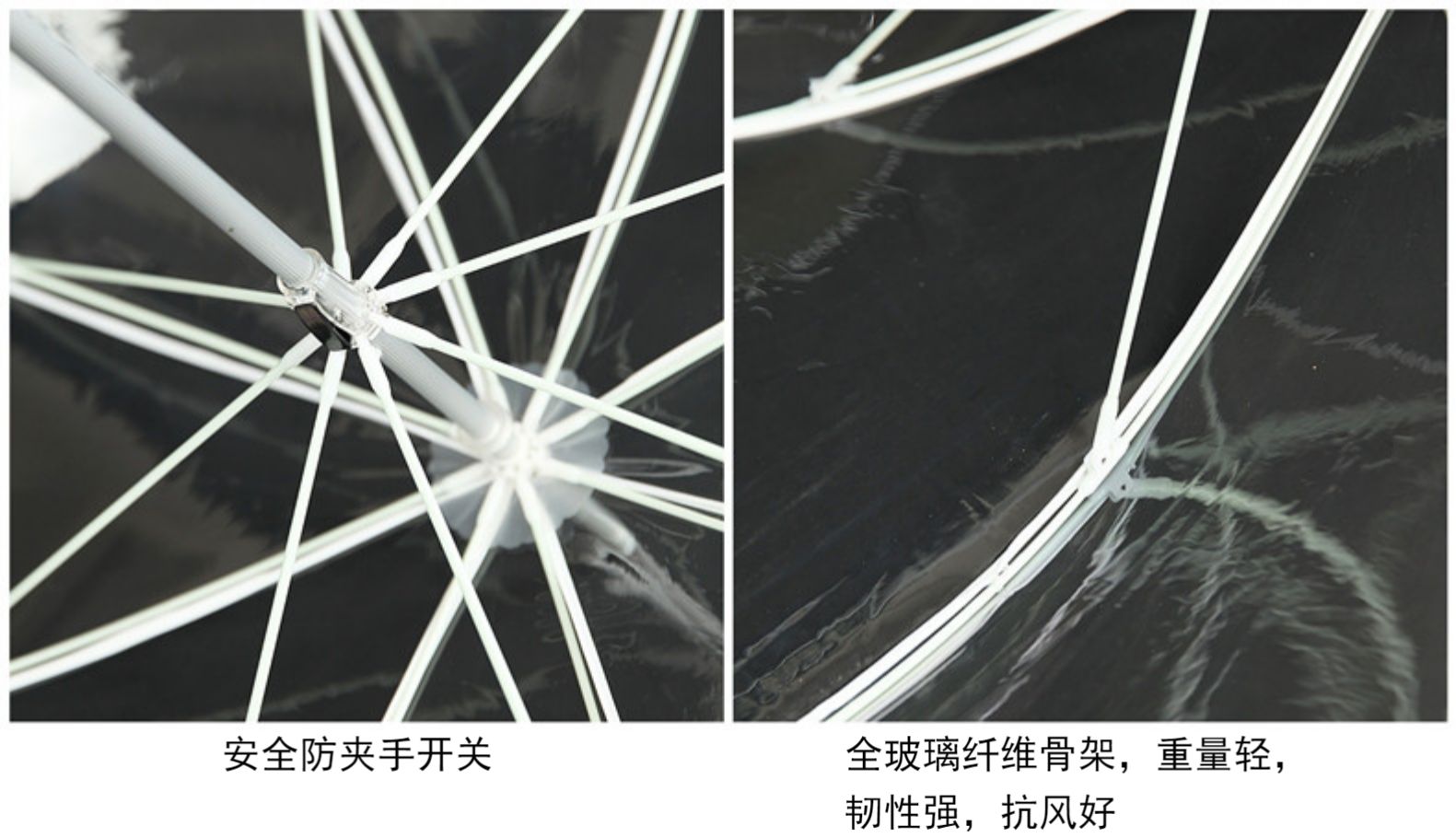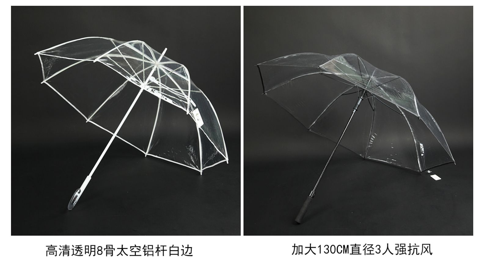 △ 고화질 투명 우산, 화이트 크리스탈 곡선 손잡이 직선 우산, 긴 손잡이 우산, 강한 방풍 및 방수 우산, 3인용 대형 우산, 기타