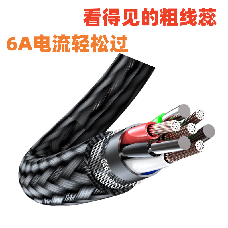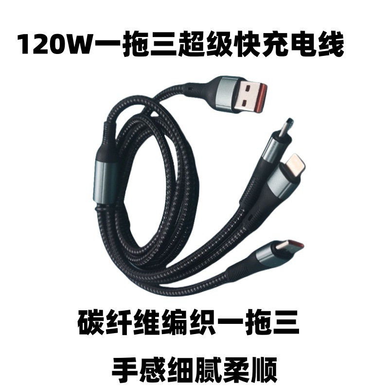 产品特点:便捷一拖三设计,支持三种不同设备同时充电,支持6A快充,大功率支持120W超级快充,Type-C支持数据传输,防断设计,加倍耐弯折,强韧尼龙编织线材,不怕拉扯,线材,耐用耐拉扯,寿命持久,更耐用。