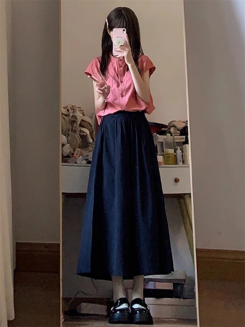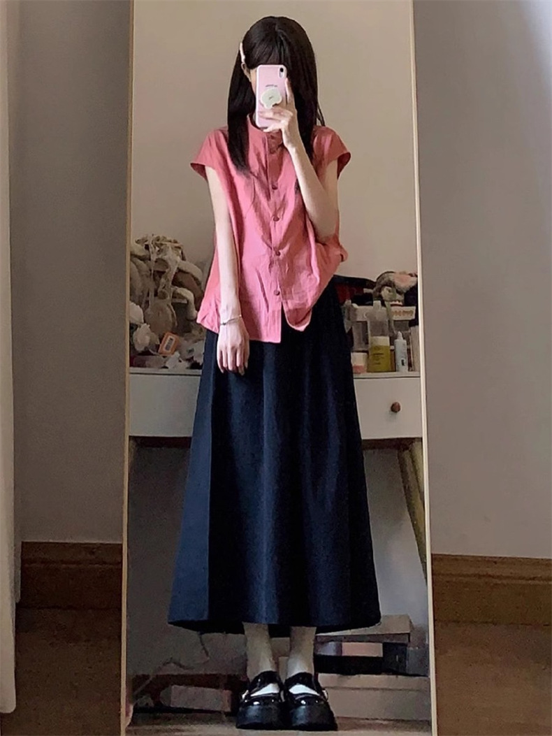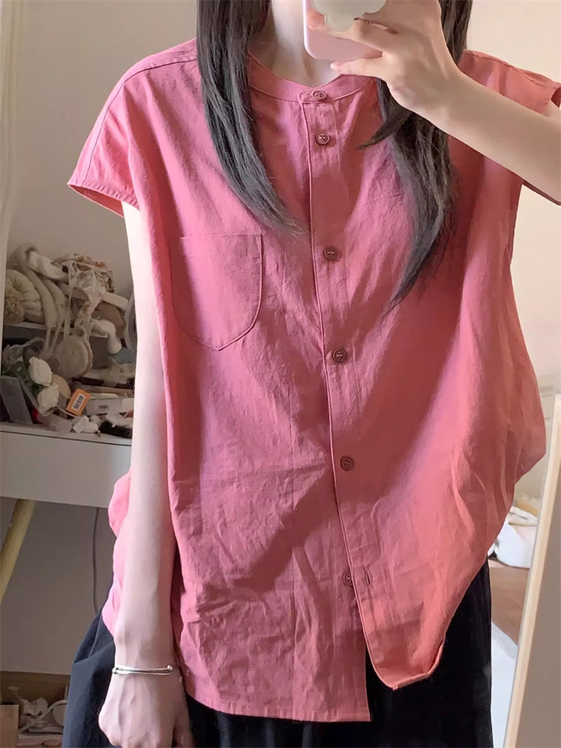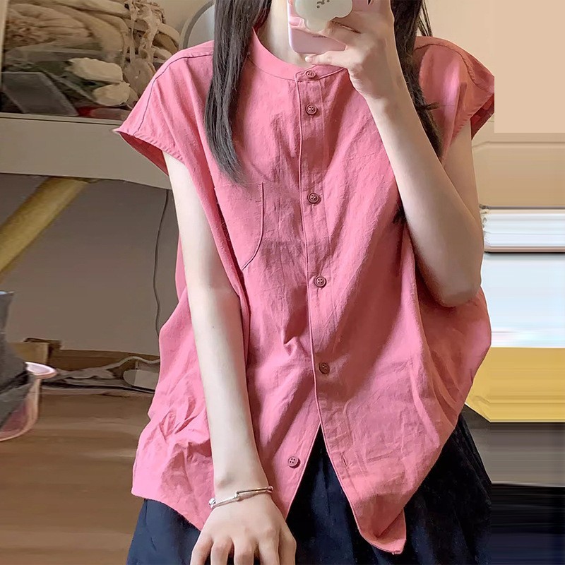 일본 스타일 레트로 로즈 레드 셔츠 여성 여름 2024 새로운 프랑스 스타일 우아한 틈새 독특한 세련된 셔츠 탑스토어 가기