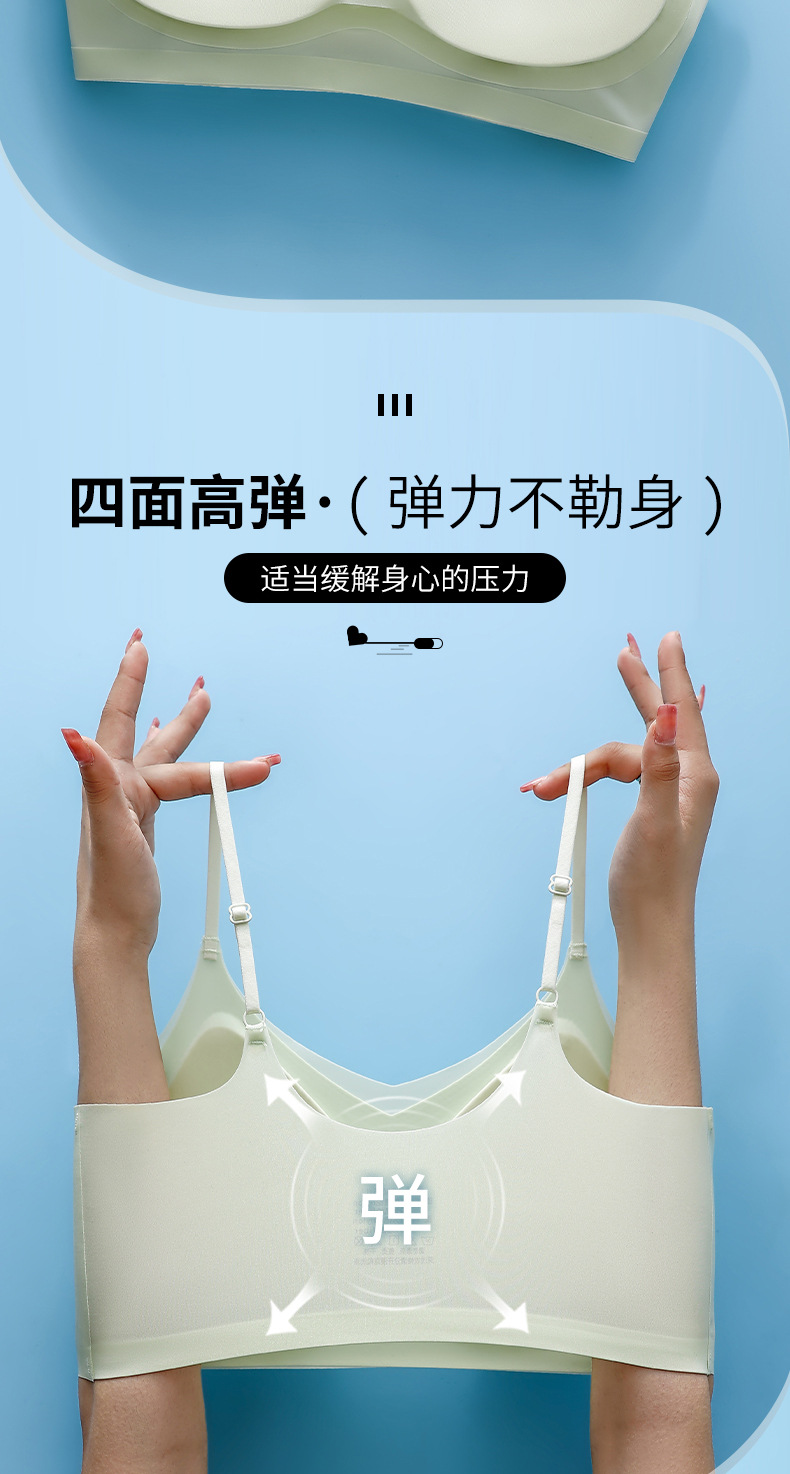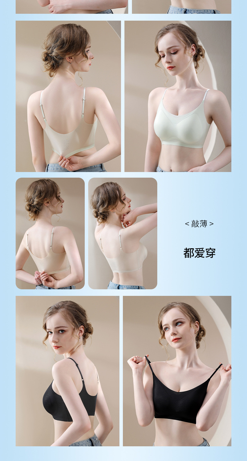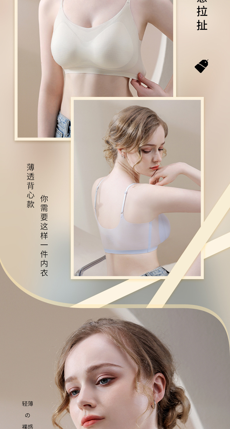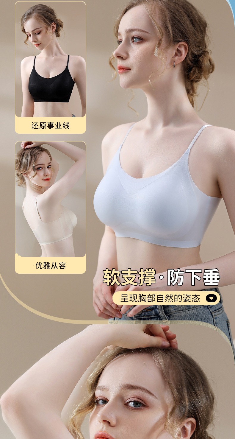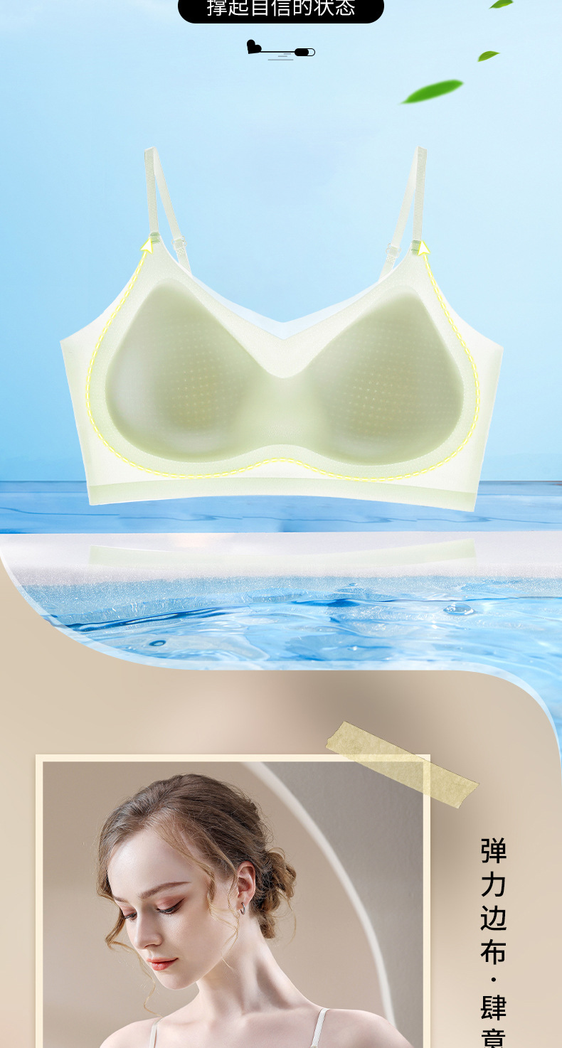 새로운 초박형 아이스 실크 원활한 상부 지원 속옷 여성의 비 강철 링 통기성 브래지어 아름다운 등이 여성 브래지어를 모았습니다.스토어 가기