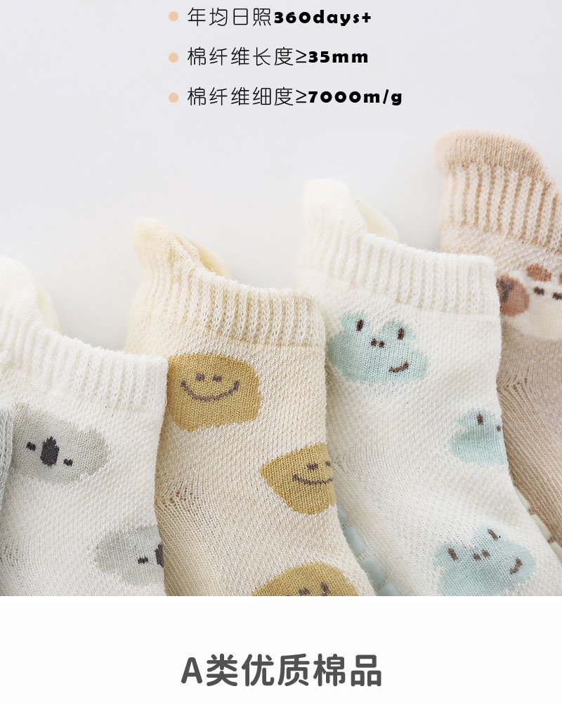 아기 바닥 양말 봄과 여름 메쉬 만화 일본 안티 드롭 실내 올 로우 소프트 고무 미끄럼 방지 유아 양말 도매