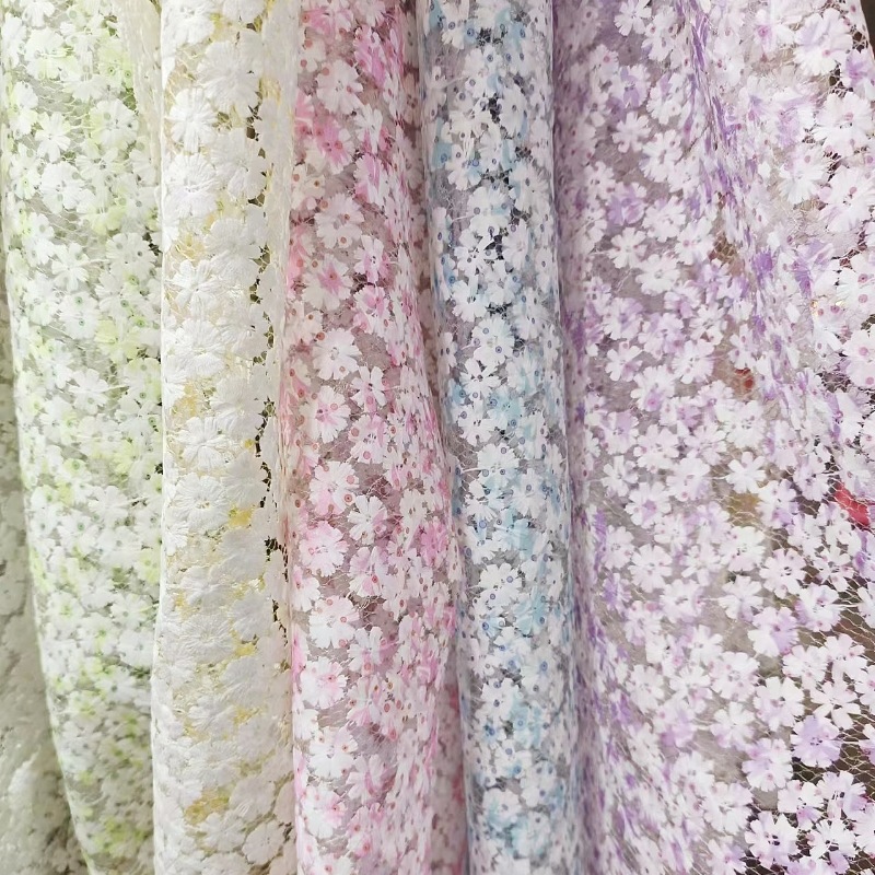 우유 실크 수용성 자수 꽃 인쇄 중공 레이스 거품 여성 의류 어린이 원피스 신발 가방 직물