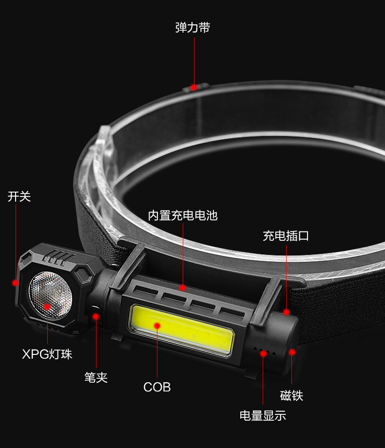 새로운 강한 가벼운 cob 헤드 램프 다기능 충전 헤드 램프 강한 자기 작업 램프 미니 손전등 낚시 램프 도매